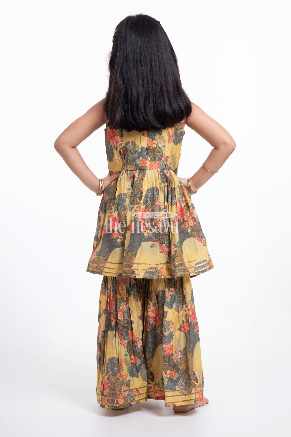 The Nesavu Girls Sharara / Plazo Set Nesavu Modal Silk Printed Sharara Plazo Dress Design for Girls Dussehra Special Hand Embroidered Nesavu 16 (1Y) / Yellow GPS312C-16 Nesavu Modal Silk Sharara Plazo Dress Design for Girls | Dussehra Special