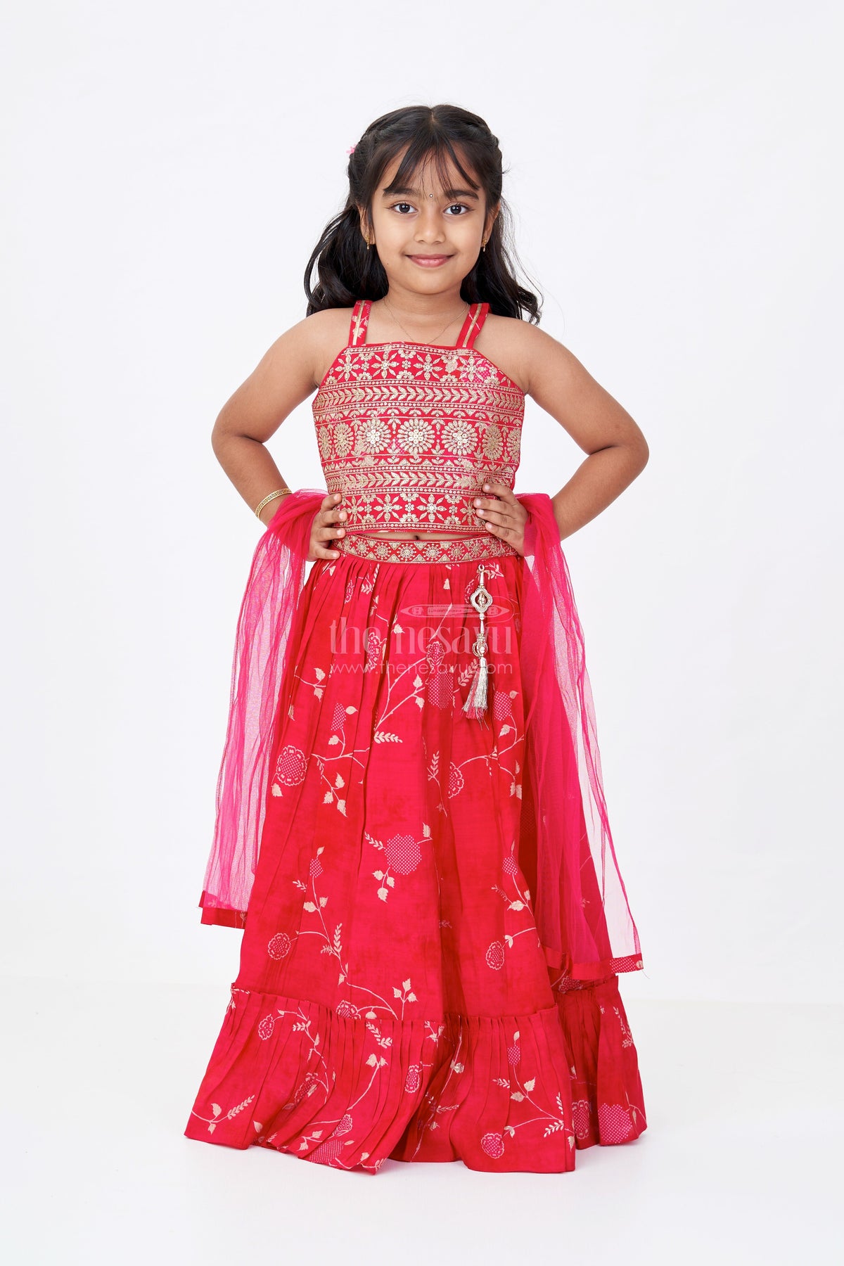 The Nesavu Girls Lehenga Choli Stunning Red Lehenga Choli for Girls with Modal Chanderi Printed Fabric and Embroidered Choli Nesavu 18 (2Y) / Pink GL594A-18 Nesavu Stunning Red Lehenga Choli Girls Modal Chanderi Printed Fabric Embroidered Choli