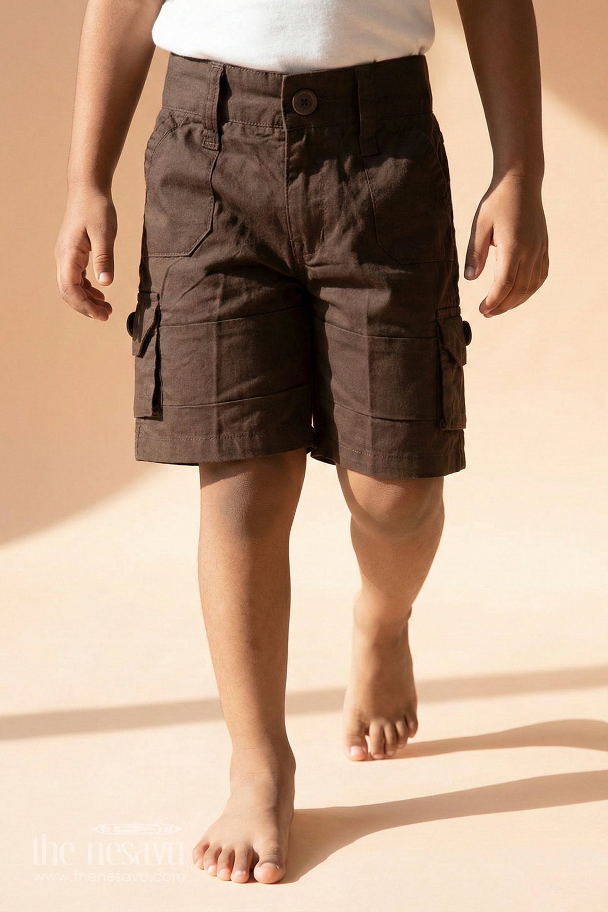 The Nesavu Boys Shorts The Nesavu Brown Cargo Cotton Boys Daily Wear Shorts Nesavu 16 (1Y) / Brown BWS005A-16 The Nesavu Brown Cargo Cotton Boys Daily Wear Shorts