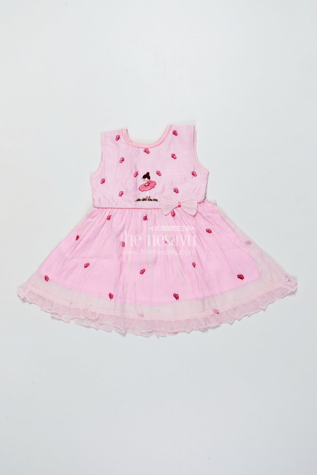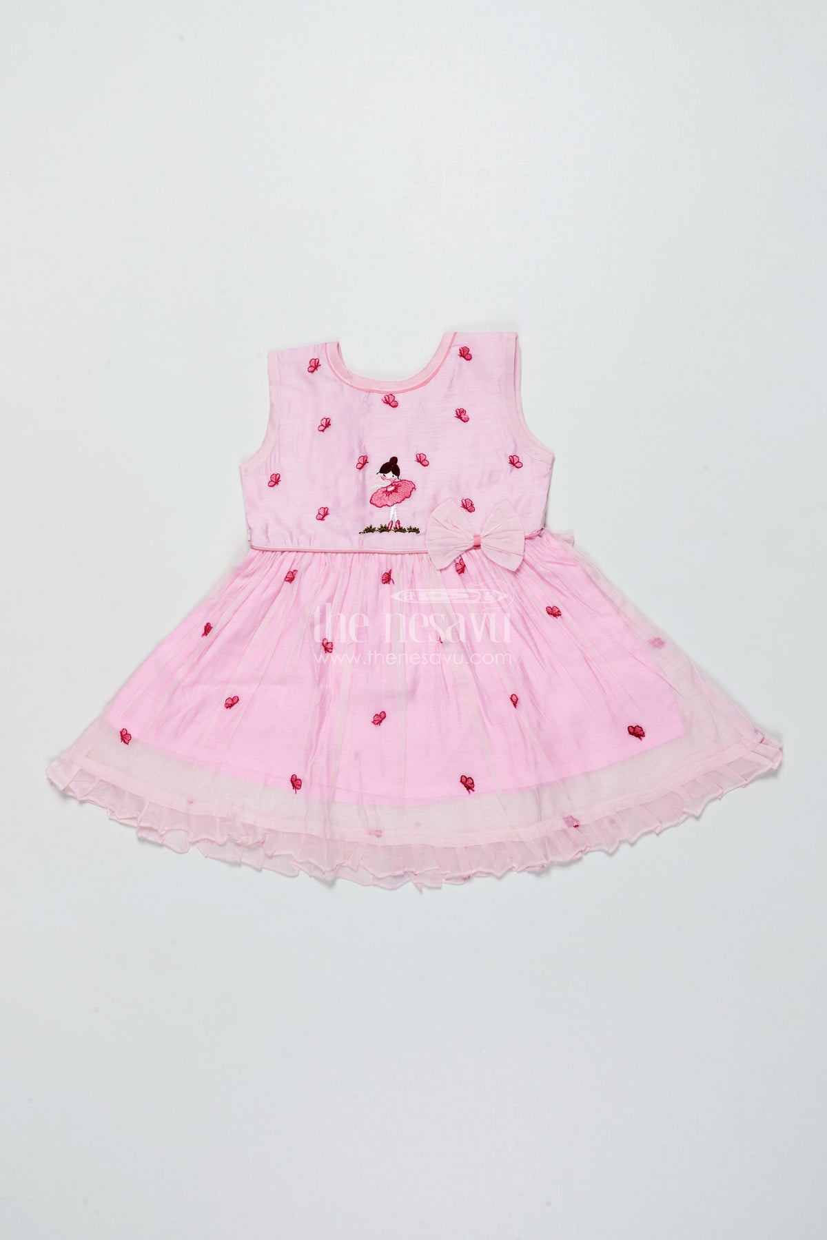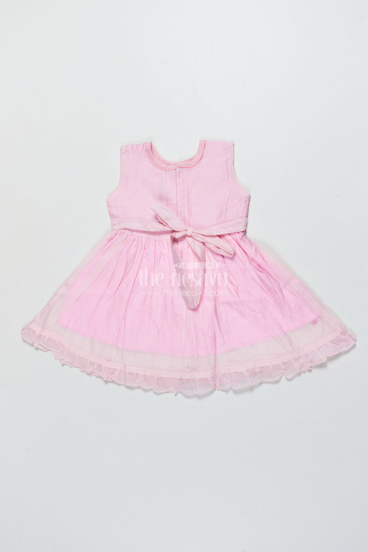 The Nesavu Girls Chanderi Frock Baby Girl Pink Frock In Chanderi Cotton for Birthdays and Photoshoots Nesavu Nesavu baby girl pink frock Chanderi cotton bow  perfect birthdays photoshoots