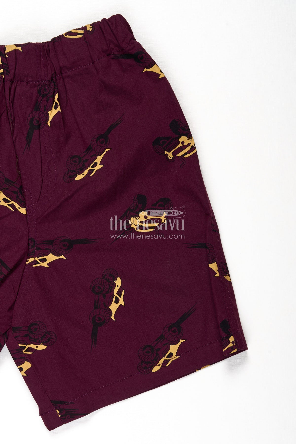 The Nesavu Boys Shorts Boys Maroon Cotton Sweat Shorts with Racing Car Digital Print and Flexible All Day Comfort Waist Nesavu 18 (2Y) / Purple BWS041A-18 Nesavu Boys Maroon Cotton Sweat Shorts Racing Car Print Comfortable Everyday Fit