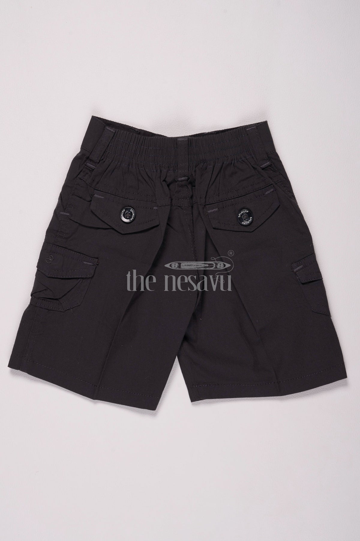 Crafted from soft cotton, these black boys' cargo shorts are both comfortable and stylish. The elastic waistband provides a snug, adjustable fit, perfect for active days. Featuring convenient cargo pockets, these shorts are ideal for pairing with a variety of shirts for a complete outfit. The durable cotton fabric ensures long-lasting wear, while the sleek black color adds a touch of classic style.