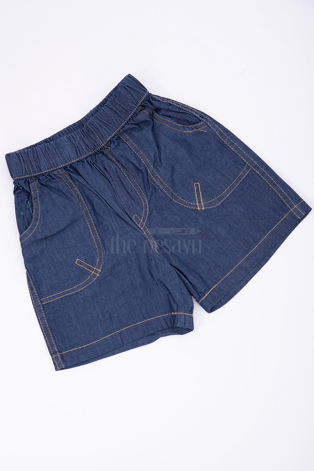 These blue cotton boys' shorts are designed for both style and comfort. The elastic waistband ensures a snug and comfortable fit, making them perfect for active boys. The durable cotton fabric is soft to the touch, offering all-day comfort. Ideal for casual wear, these shorts pair well with any top, making them a versatile addition to your child's wardrobe.