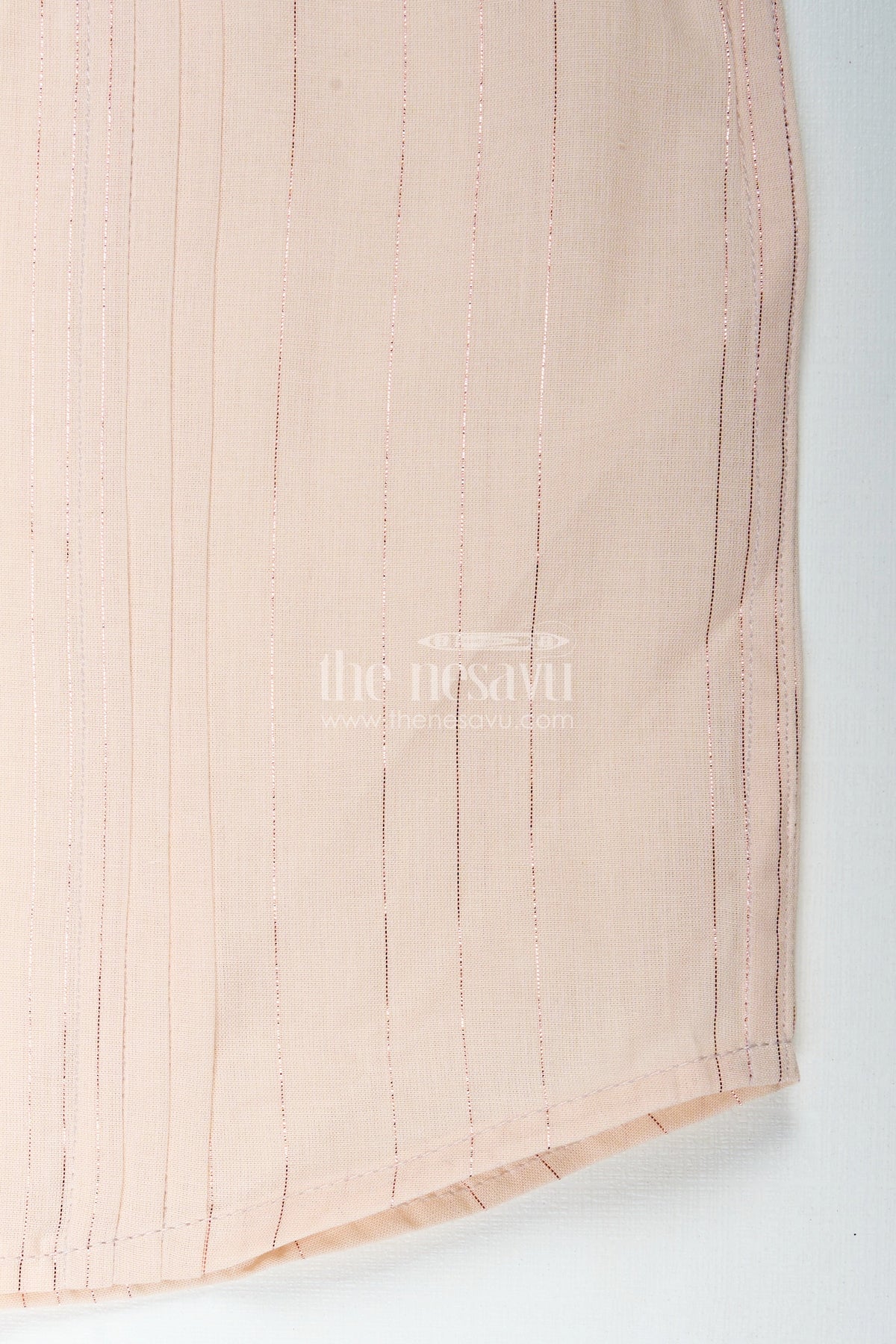Boys simple cotton shirt for temple visits is the ideal choice for serene and respectful settings. Made from breathable cotton with a subtle stripes print, this shirt exudes simplicity and traditional appeal. Its soft beige tone and elegant vertical stripe detailing provide a refined look, perfect for temple outings and family rituals. The half sleeves and mandarin collar add to the minimalist design, while the lightweight fabric ensures your child stays comfortable through the day. Finished with a neat front button closure, this shirt offers an easy fit and a versatile look that pairs effortlessly with white dhotis or pants.
