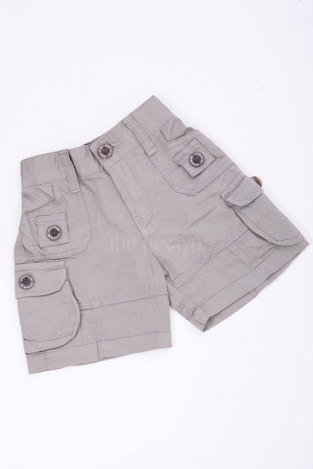These gray cargo-style Bermuda shorts are perfect for boys who love to stay active. Made from soft, durable cotton, these shorts feature multiple pockets for added functionality. The elastic waist back ensures a comfortable fit, making these shorts ideal for everyday adventures.