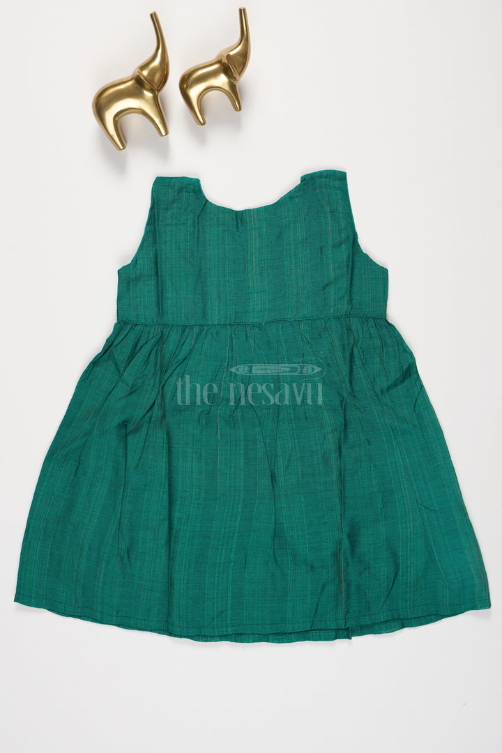 The Nesavu Baby Cotton Frocks Green Striped Chanderi Viscose Silk Frock with Overlap Neckline for Toddlers Nesavu Green Striped Chanderi Viscose Silk Frock with Overlap Neckline for Toddlers Nesavu