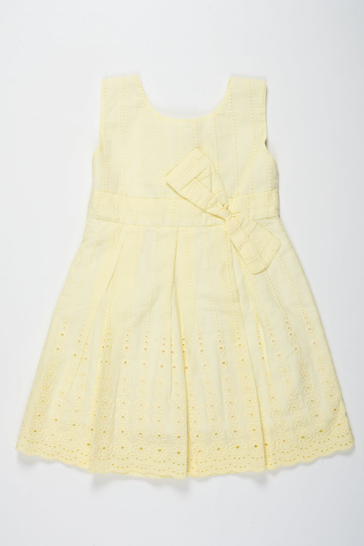 The Nesavu Girls Cotton Frock Yellow Cotton Girls Frock with Chikankari Embroidery Nesavu 12 (3M) / Yellow GFC1308A-12 Yellow Cotton Girls' Frock with Chikankari Embroidery - Nesavu