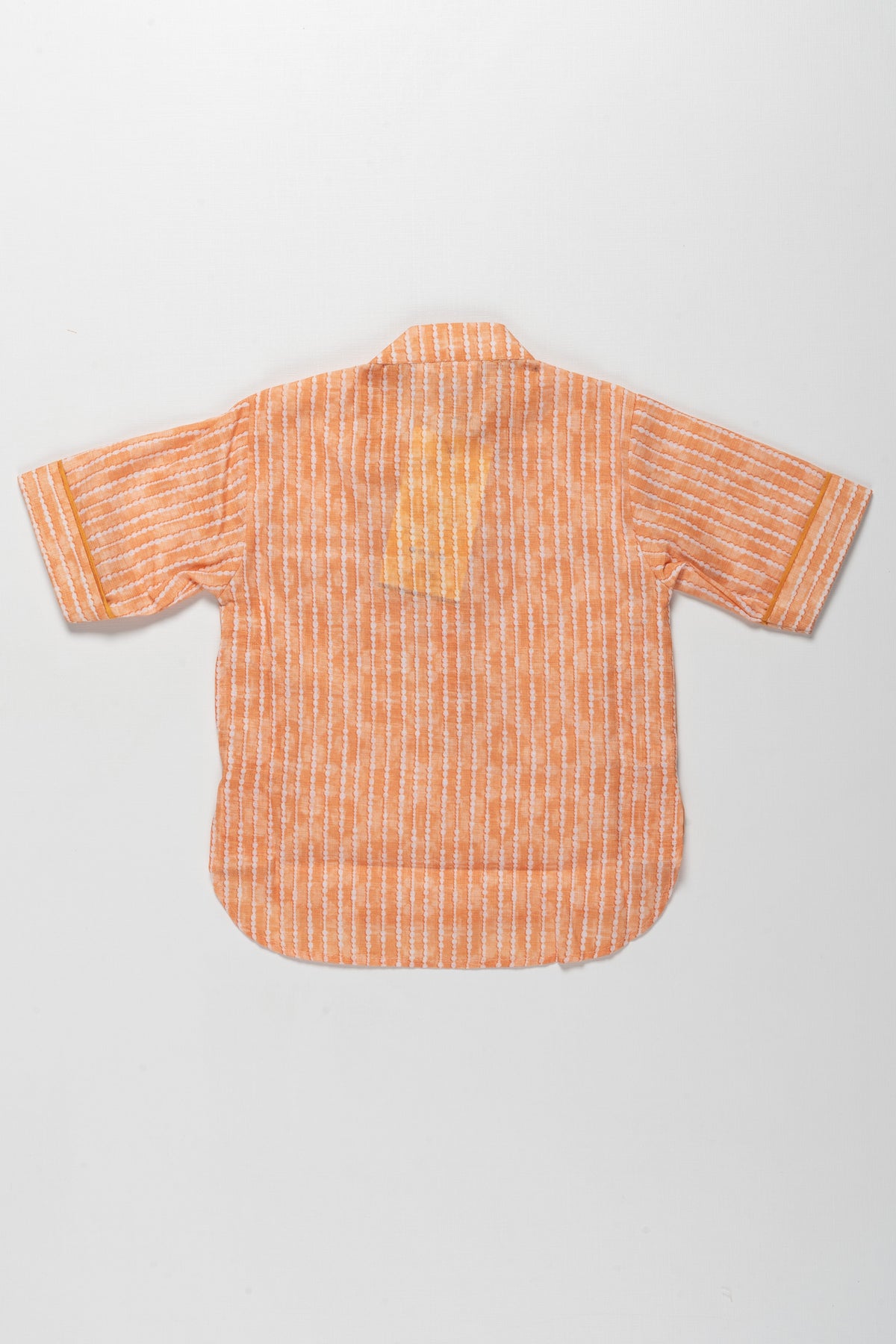 Boys Cotton Blend Striped Shirt in Vibrant Orange with Half Sleeves and Shirts Online Style