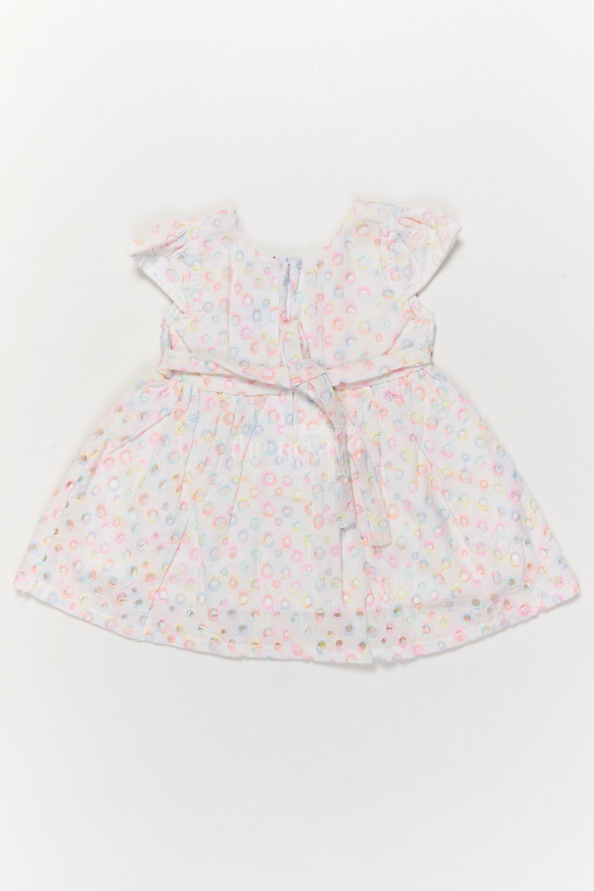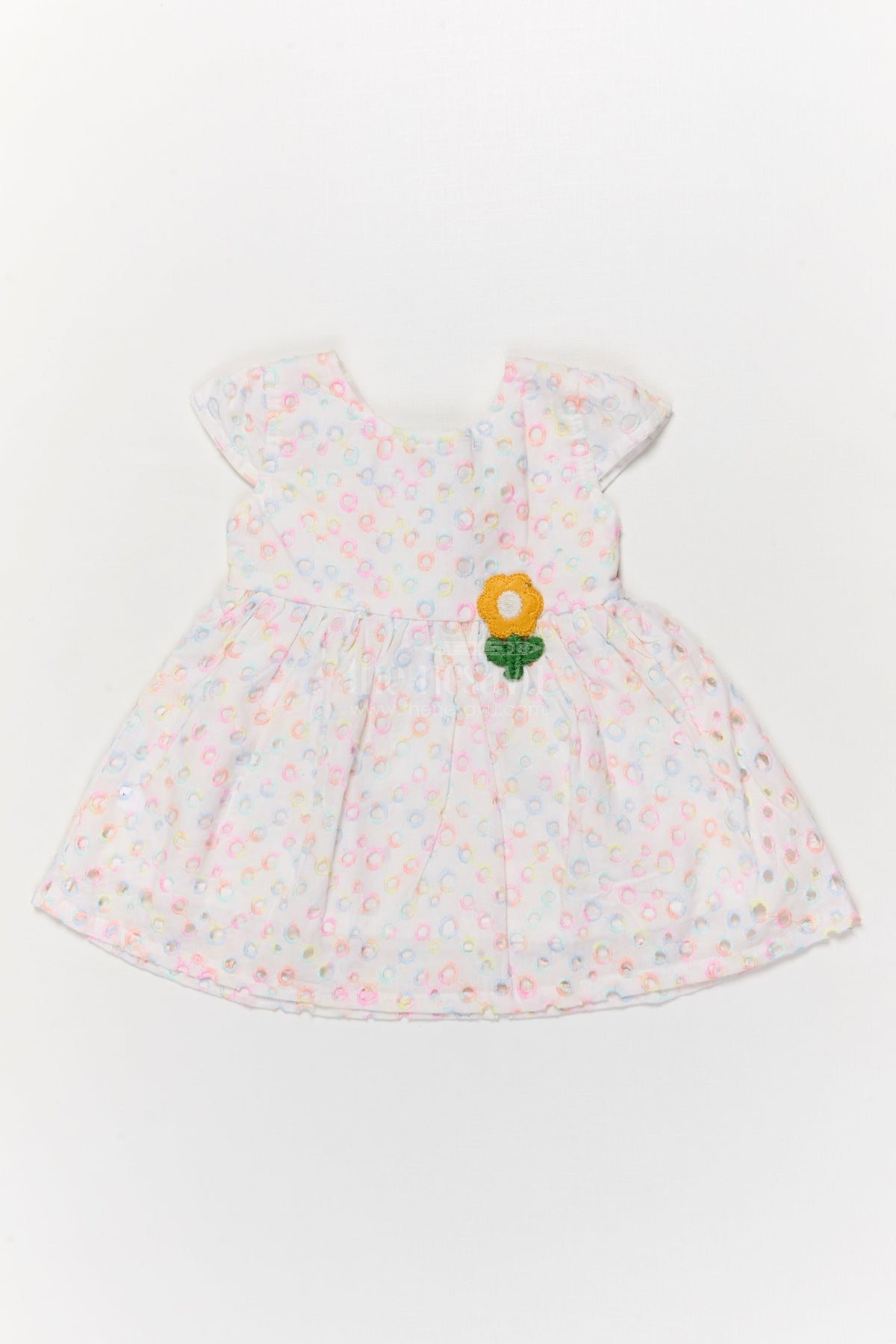 Yellow Baby Girl Hakoba Frock with Floral Patch and Pastel Circle Embroidery