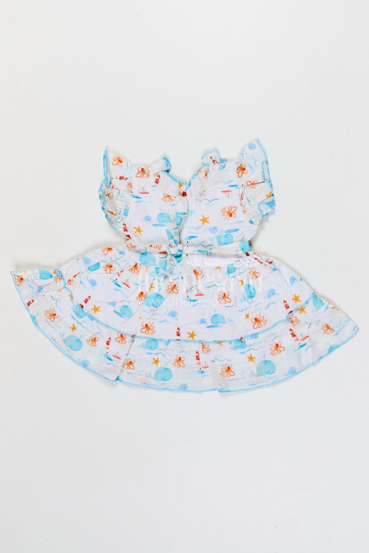 Baby Girls Cotton Printed Frock with Cute Ocean Theme Design
