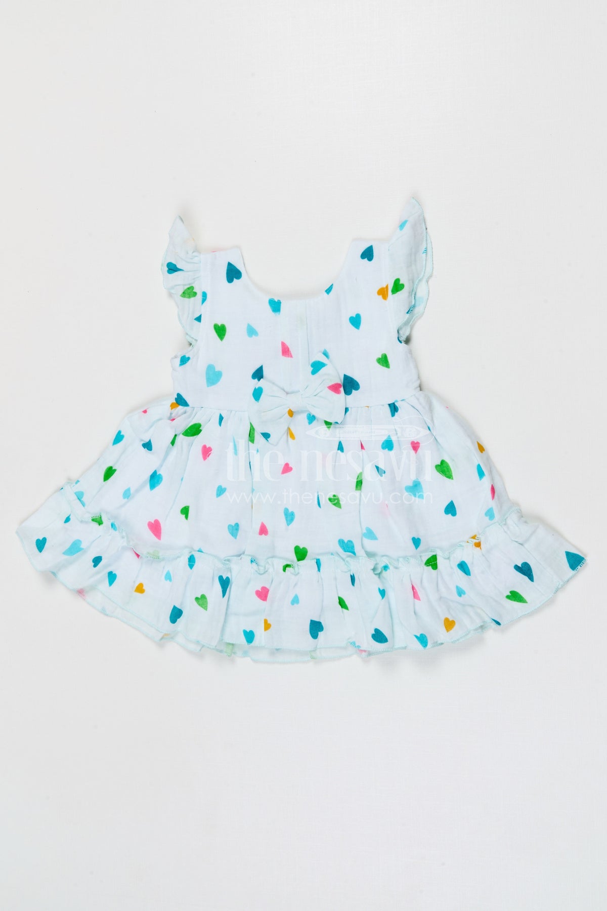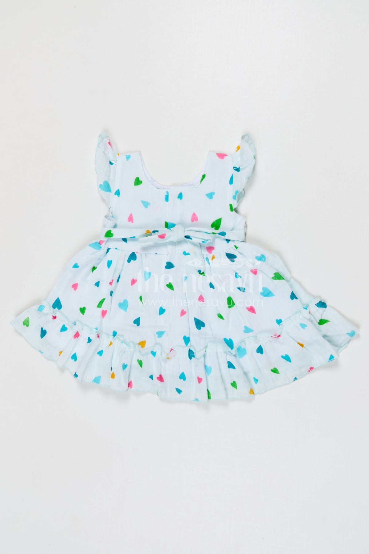 - Design: Floral printed baby frock with bow detail