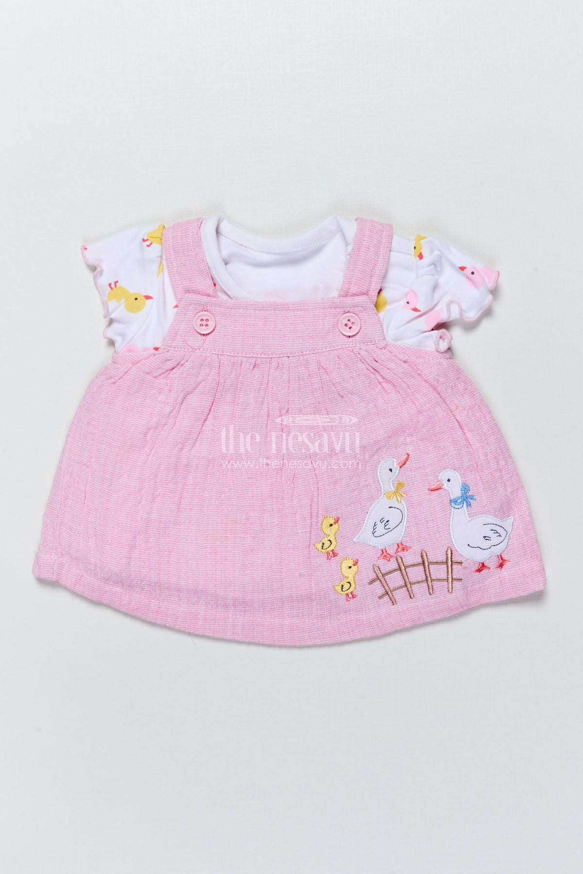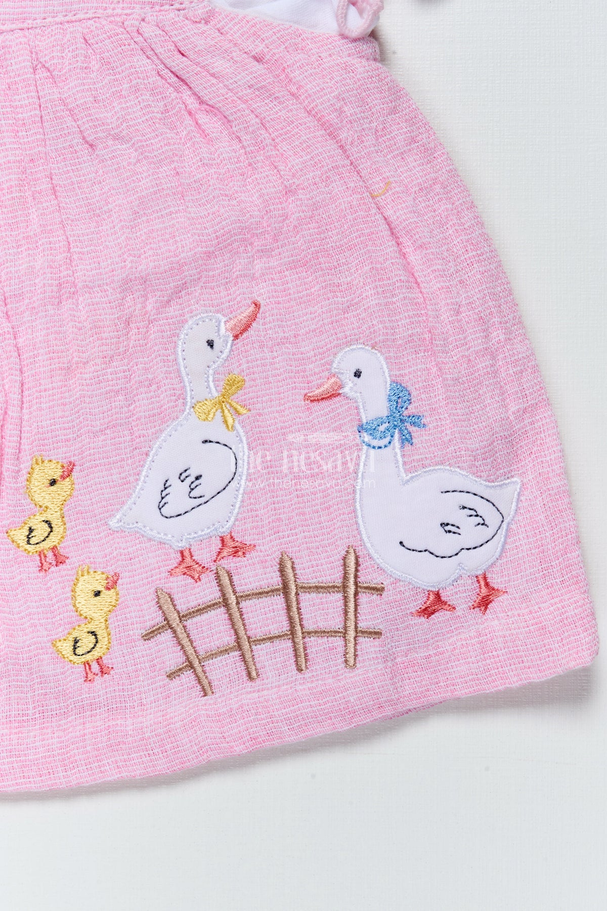 The Nesavu Baby Frocks Baby Girl Frock with Embroidered Ducks for Playful Outings and Photo Days Nesavu 10 (NB) / Pink BFJ872A-10 Nesavu baby girl cotton frock set duck embroidery  ideal outings photo sessions