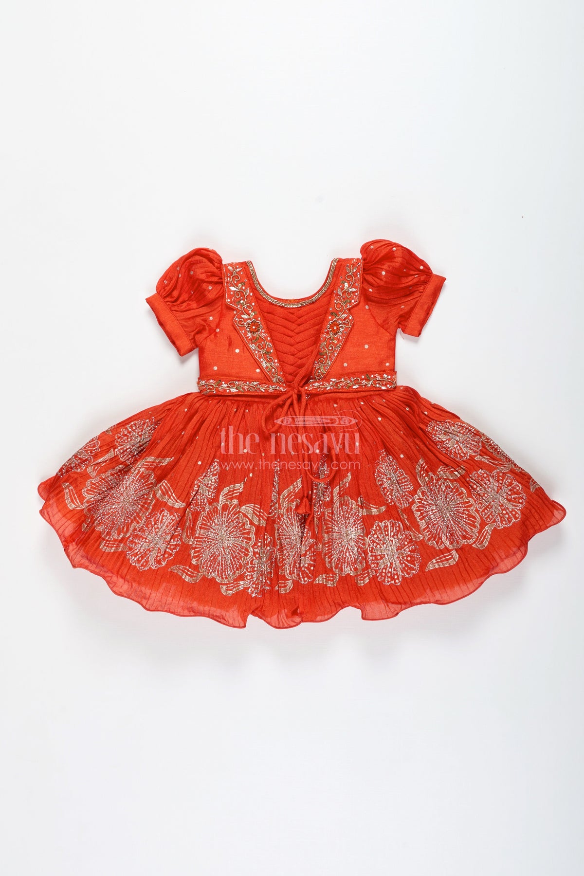 The Nesavu Silk Frock Baby Girl Red Silk Frock with Sparkling Stones for Parties and Family Functions Nesavu Nesavu Baby Girl Red Silk Frock With Stone Embellishments Festive Partywear For Toddlers