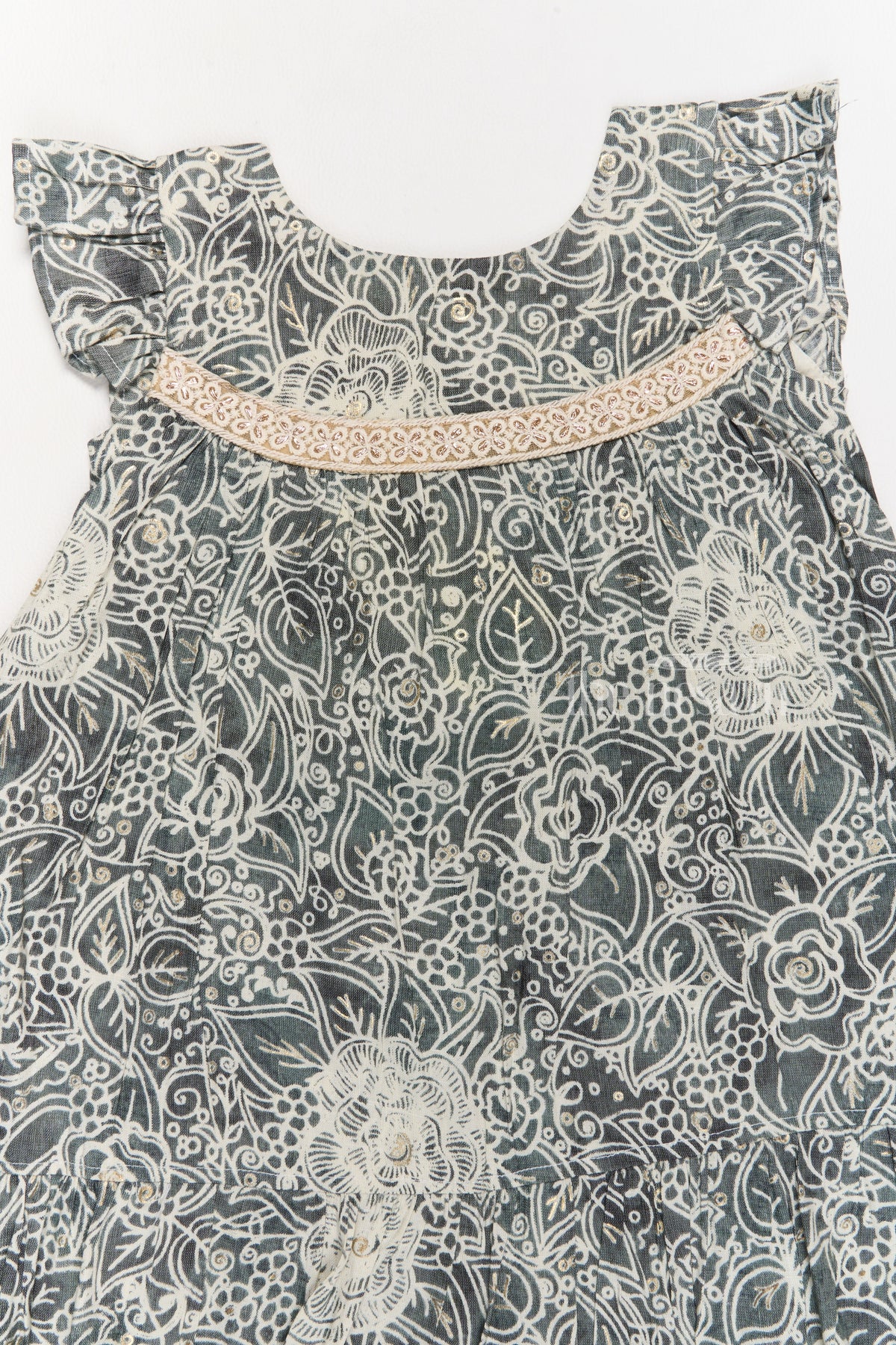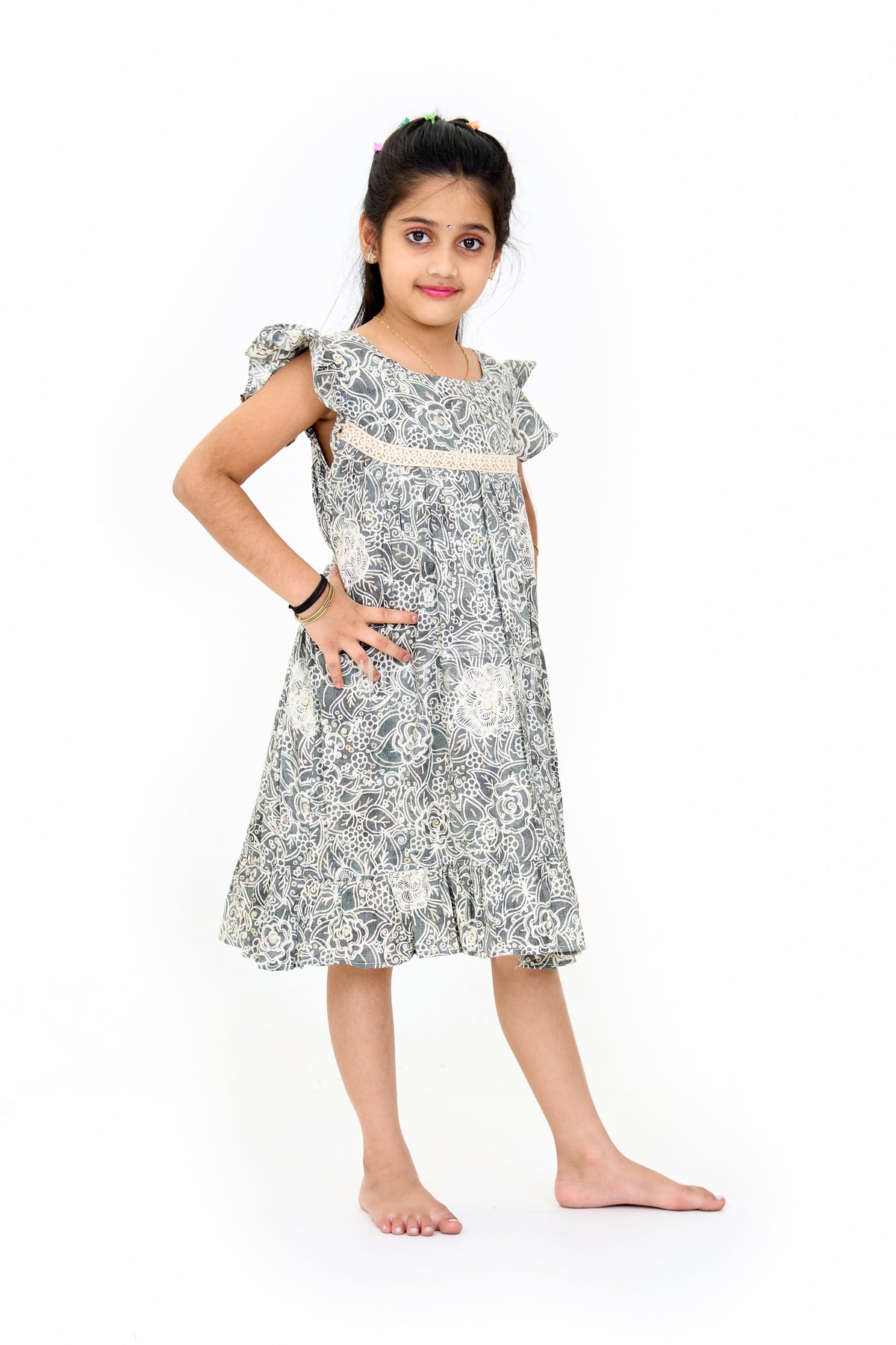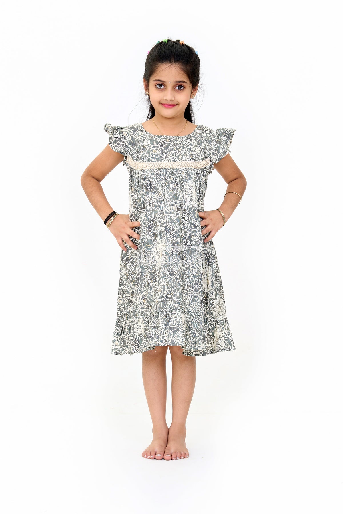 Let your little one embrace effortless elegance with this Cotton Frill Frock, featuring a unique botanical-inspired floral print. The soothing earthy tones of the Rayon fabric create a natural and calming aesthetic, while the intricately woven lace yoke lends a touch of vintage charm. The ruffled hemline and flutter sleeves complete the look with a playful flair. This frock is perfect for occasions like tea parties or spring celebrations, offering unmatched comfort and style. The breathable fabric and functional design make it a must-have for your child’s wardrobe, ensuring they stay trendy and relaxed in every setting.