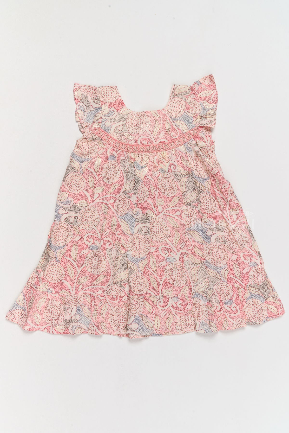 Add a touch of elegance to your child's casual wardrobe with this Casual Cotton Dress. Made from lightweight Rayon, this dress showcases a delightful floral print in earthy tones, perfectly blending style with practicality. The lace detail at the yoke adds sophistication, while the ruffled hem and flutter sleeves complete the look with a playful twist. Perfect for occasions like school events or playdates, this dress offers unmatched comfort and a timeless design. Its breathable fabric and easy fit make it an essential addition to your little one’s everyday wear.