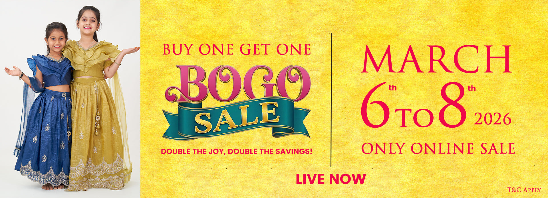 Double the joy with The Nesavu's BOGO Sale 2026. From vibrant ethnic wear to stylish casual outfits, this offer lets you expand your child's wardrobe with quality pieces at unbeatable value. Whether you're preparing for a festival or updating everyday essentials, this limited-time deal ensures your little ones are dressed in comfort and style.