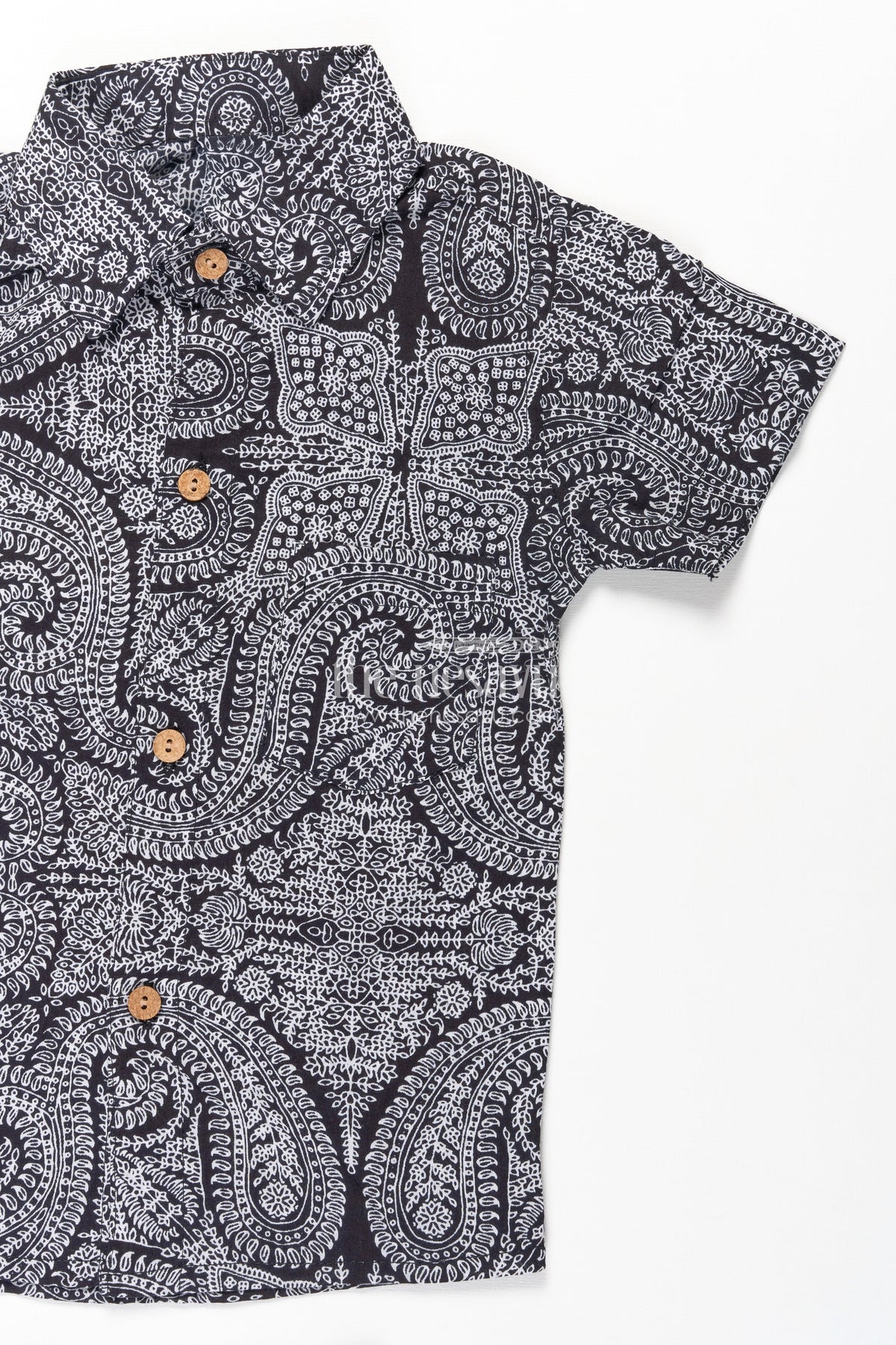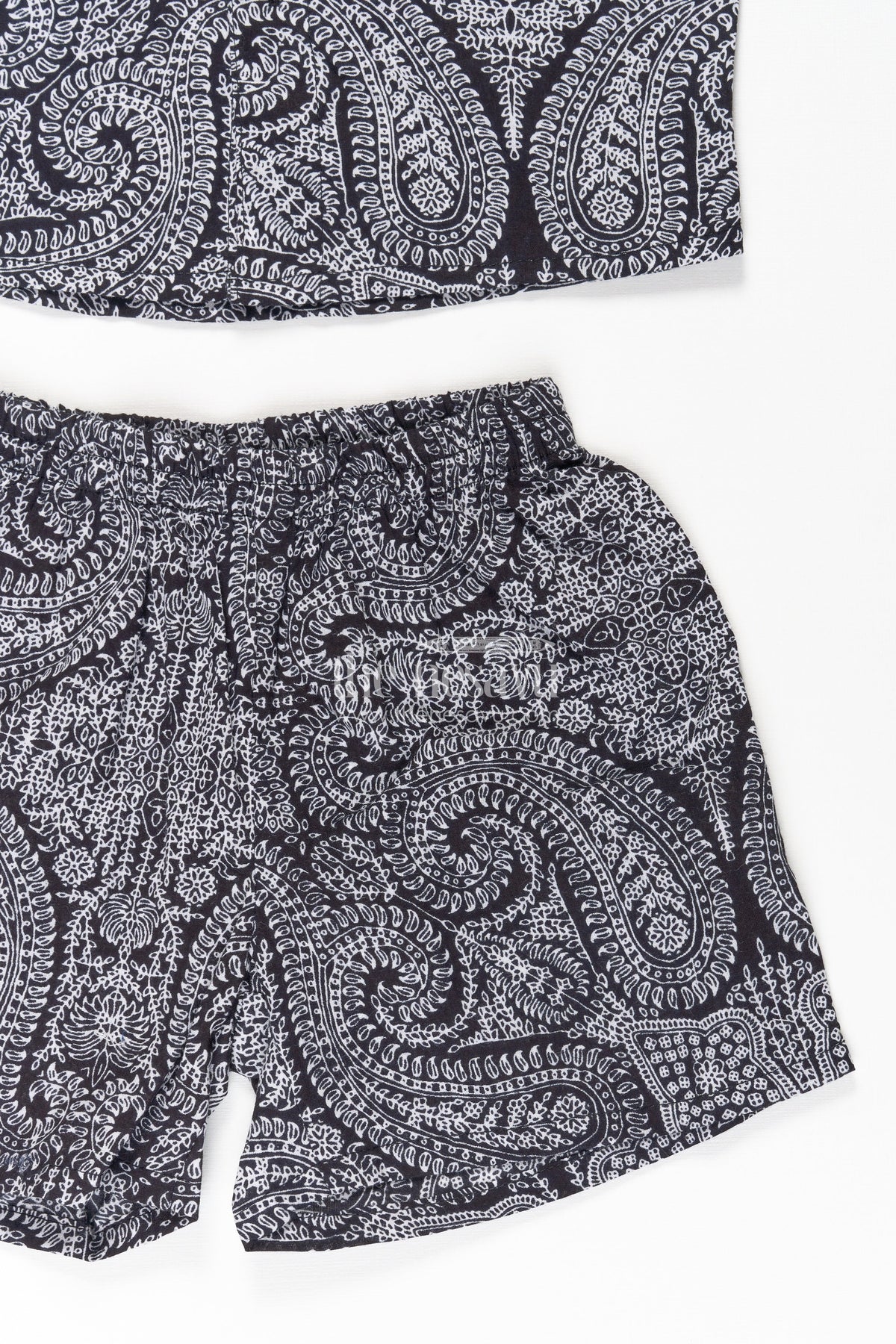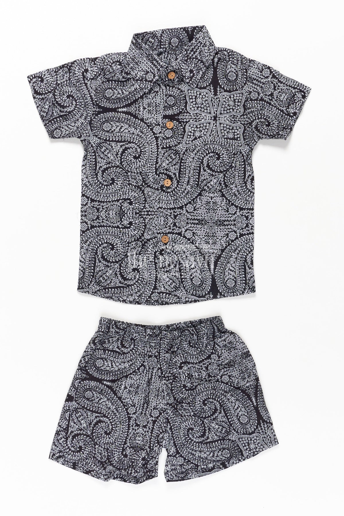 The Nesavu Boys Casual Set Boys Black Casual Dress Cotton Set with Paisley Digital Print Shirt and Matching Shorts Nesavu 16 (1Y) / Black BCS266A-16 Nesavu Boys Black Casual Dress Set Cotton Paisley Print Shirt Matching Shorts