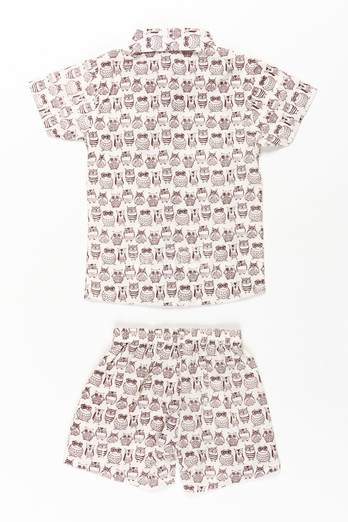 Boys Brown Shirt and Shorts Set in Cotton with Owl Digital Print for Smart Casual Styling