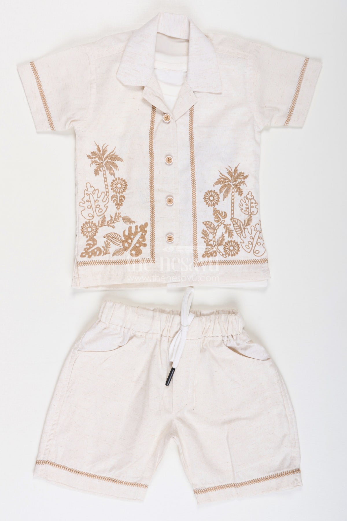 The Nesavu Boys Casual Set Boys Cotton Clothes for Kids with Thread Embroidery Shirt and Casual Tee Set Nesavu Cotton Clothes Kids Embroidered Shirt Sleeveless Tee Combo Set | The Nesavu