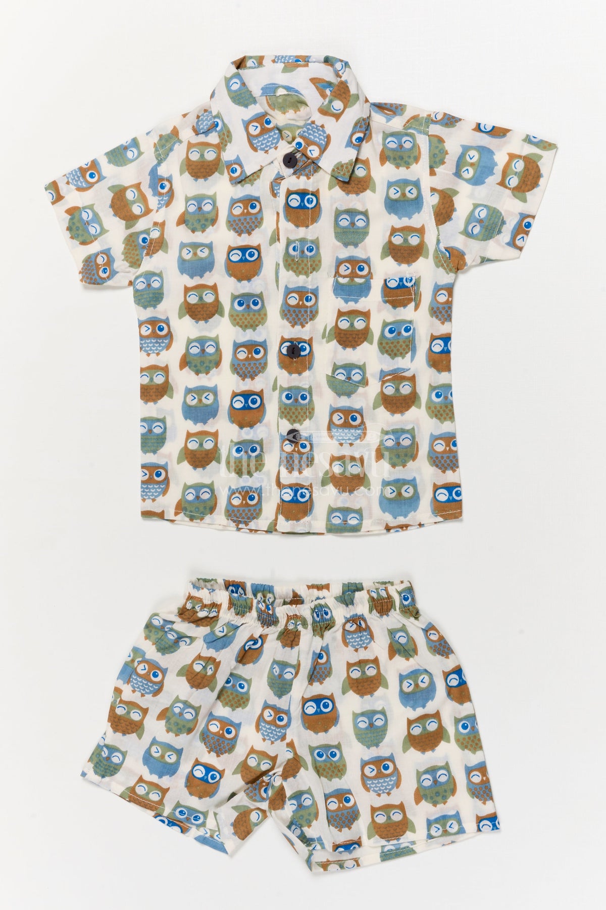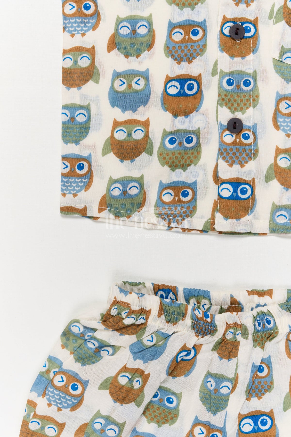 The Nesavu Boys Casual Set Toddler Boys Cotton Set with Quirky Owl Print for Casual Days Nesavu 16 (1Y) / Multicolor BCS547A-16 Nesavu cotton casual outfit for toddler boys with quirky owl print – breathable and playful wear