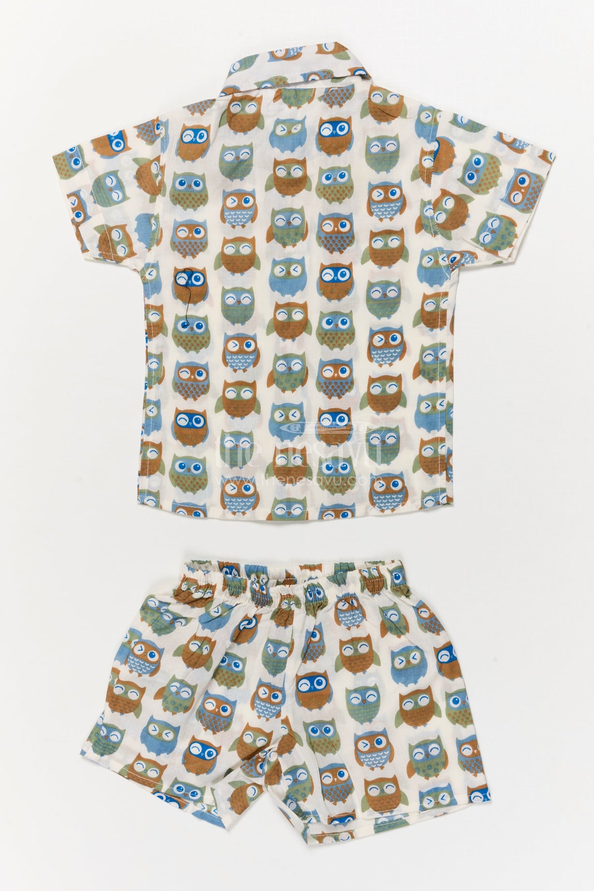 The Nesavu Boys Casual Set Toddler Boys Cotton Set with Quirky Owl Print for Casual Days Nesavu Nesavu cotton casual outfit for toddler boys with quirky owl print – breathable and playful wear