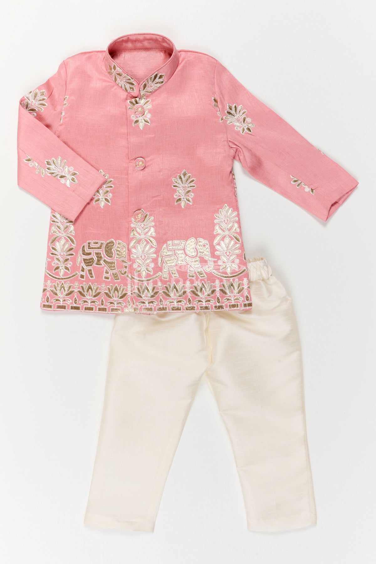 • This baby boy sherwani set for festive celebrations is crafted from soft viscose blend silk for a rich feel