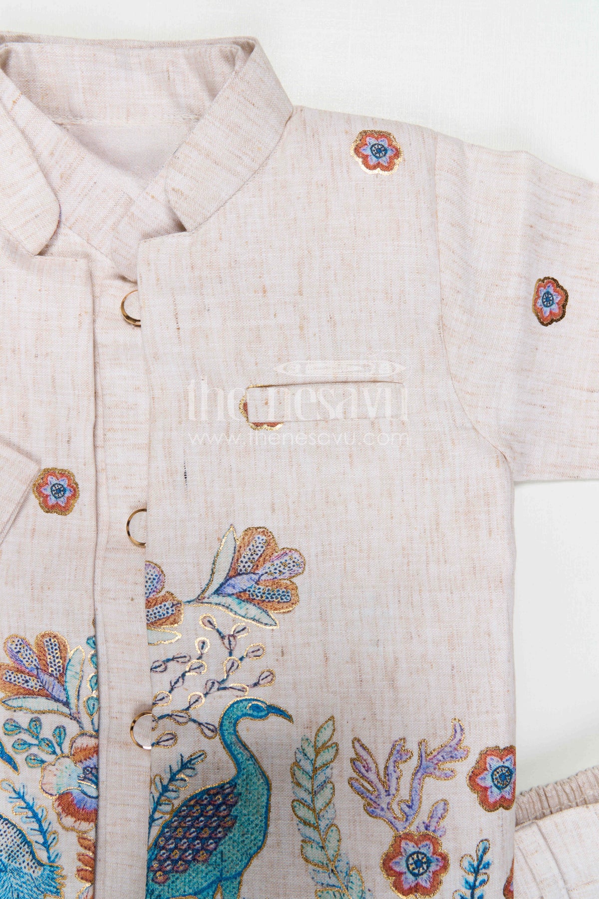 • This boys kurta set for festive days is crafted from soft cotton with digital print that feels light and breathable