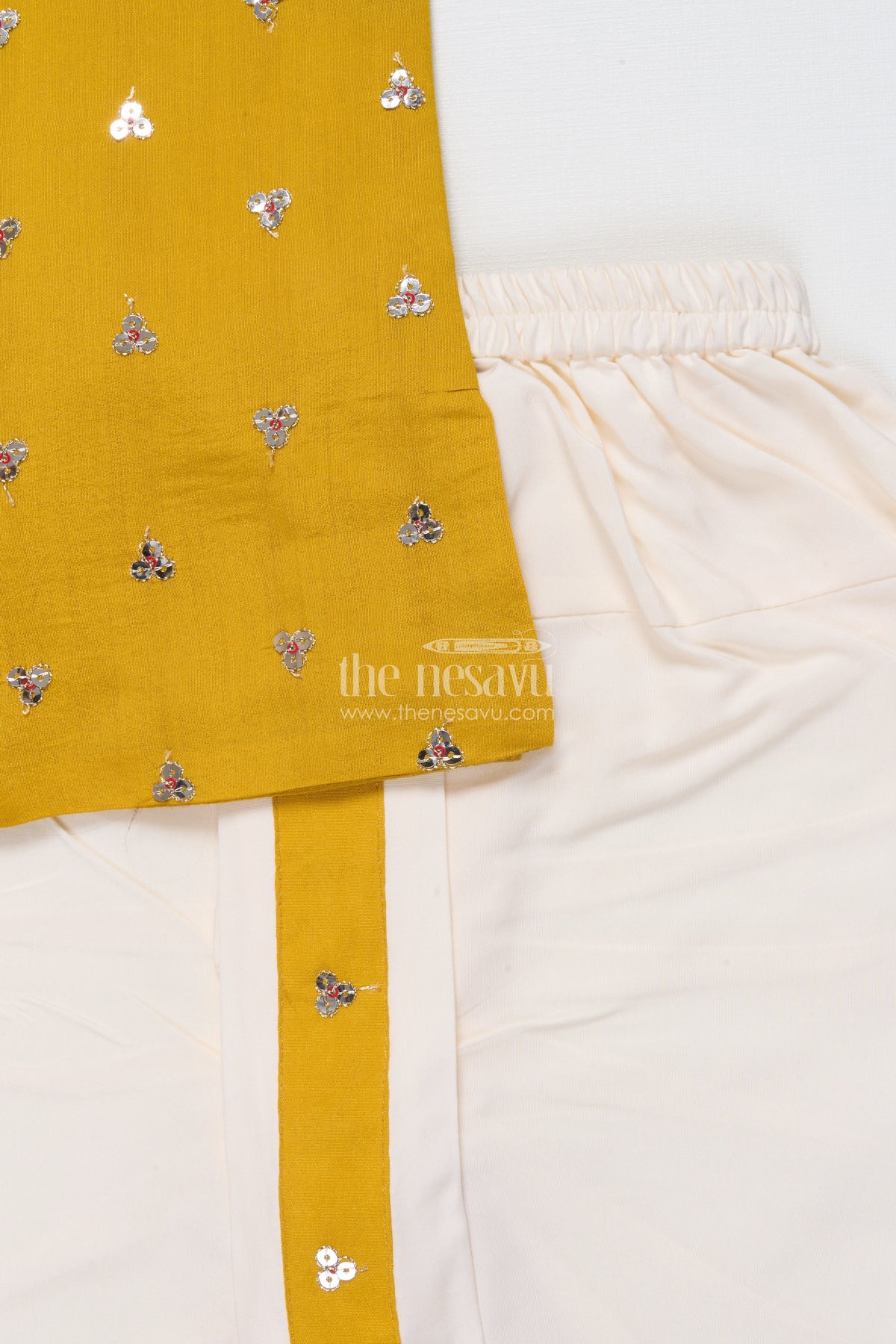 The Nesavu Boys Dothi Set Kids Festive Dhoti Kurta Set with Mirror Work for Traditional Ceremonies Nesavu Nesavu boys festive dhoti set mirror sequin embroidery poojas weddings
