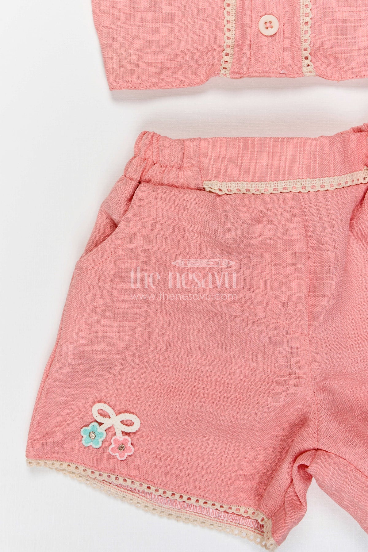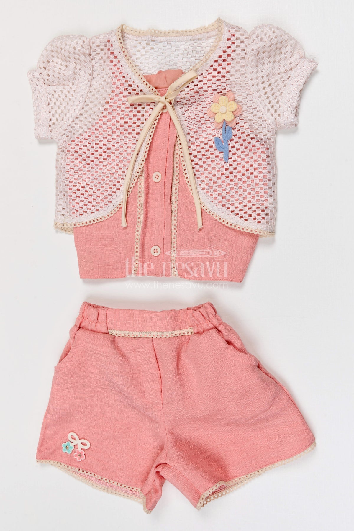 • Design: Lace embroidery jacket with matching shorts
