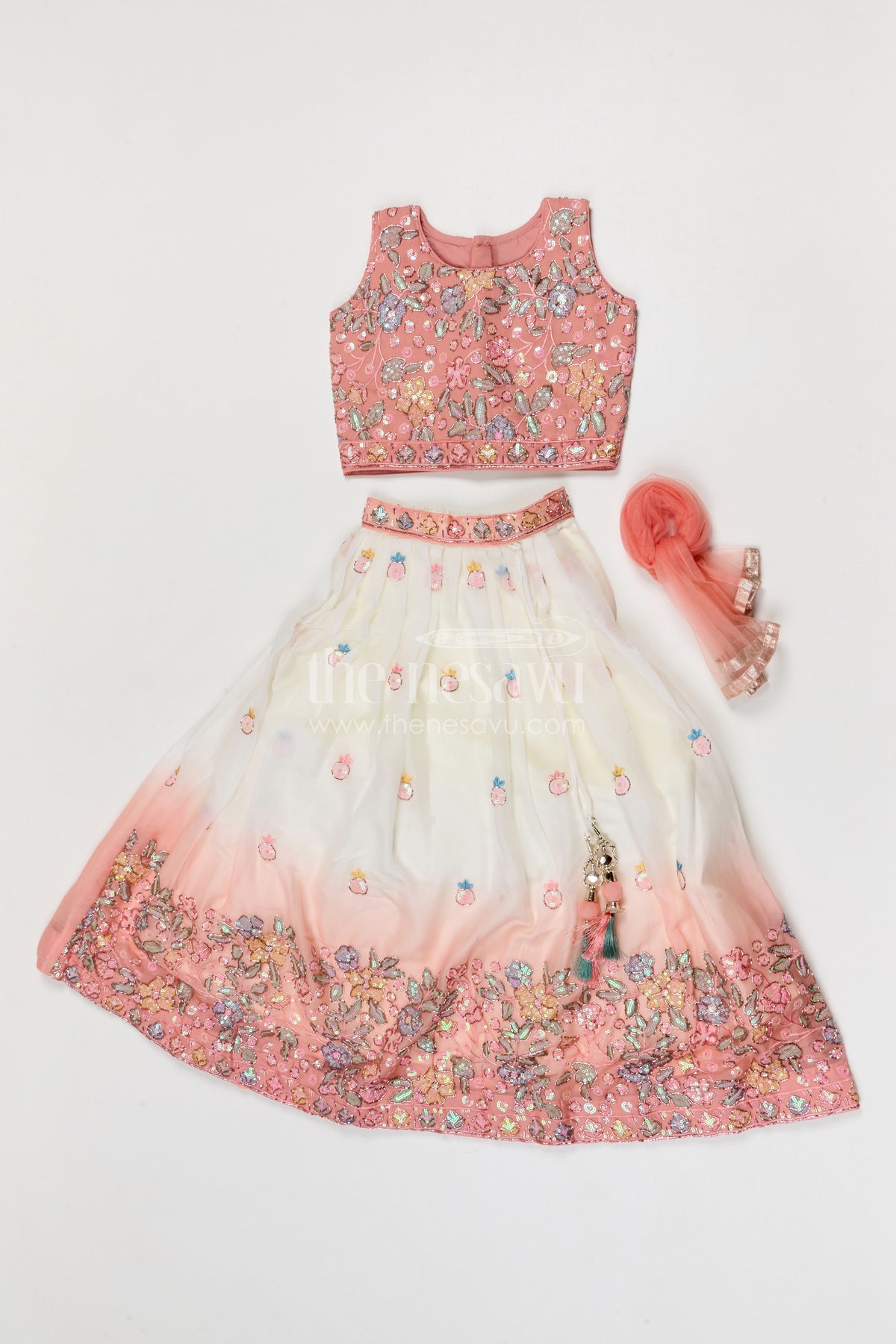 The Nesavu Girls Fancy Lehenga Girls Flared Lehenga for Weddings and Festive Celebrations Nesavu Nesavu girls georgette designer lehenga for weddings and celebrations with embroidered yoke