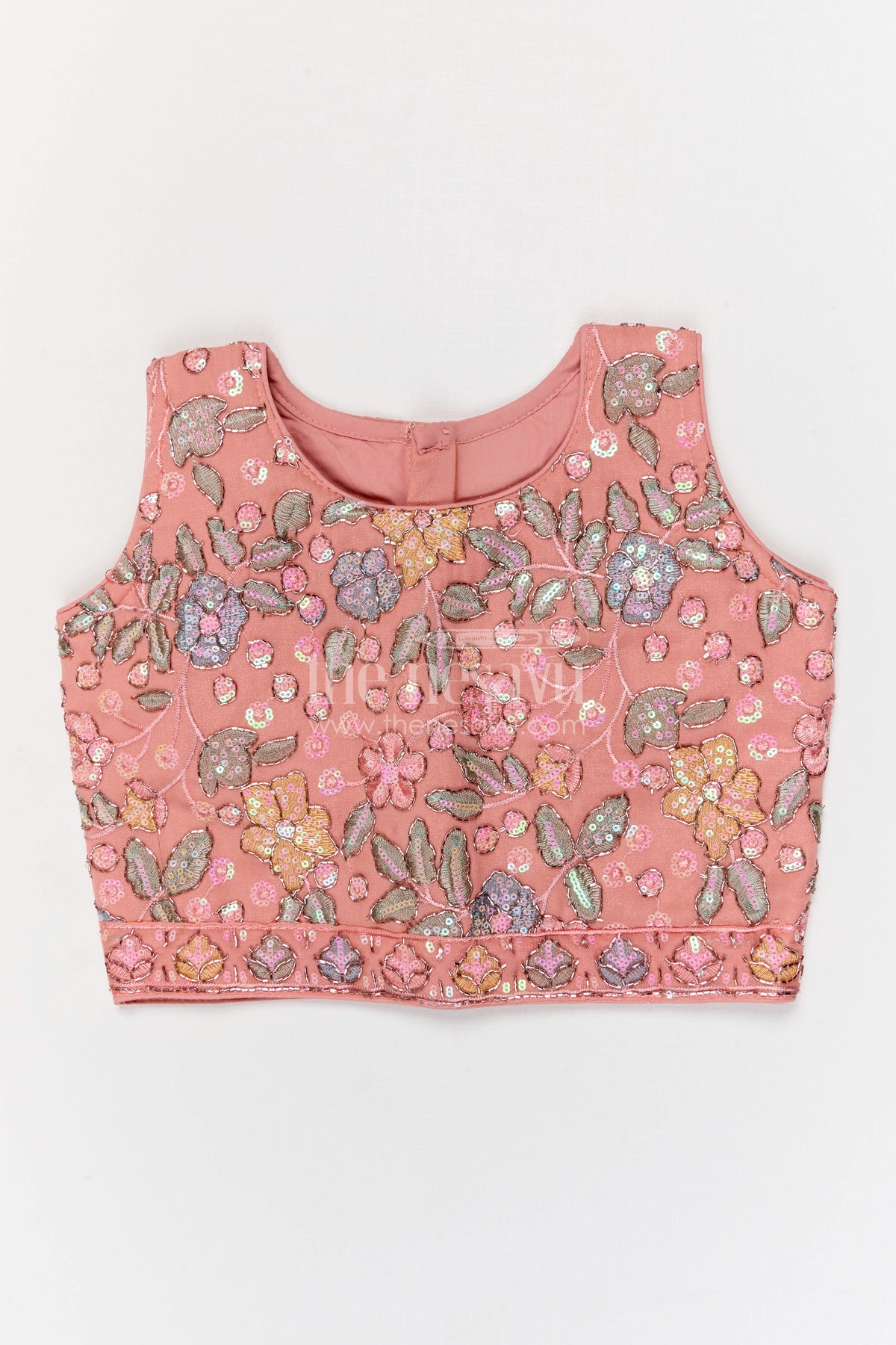 The Nesavu Girls Fancy Lehenga Girls Flared Lehenga for Weddings and Festive Celebrations Nesavu 24 (5Y) / Pink / Georgette GL883CB-24 Nesavu girls georgette designer lehenga for weddings and celebrations with embroidered yoke