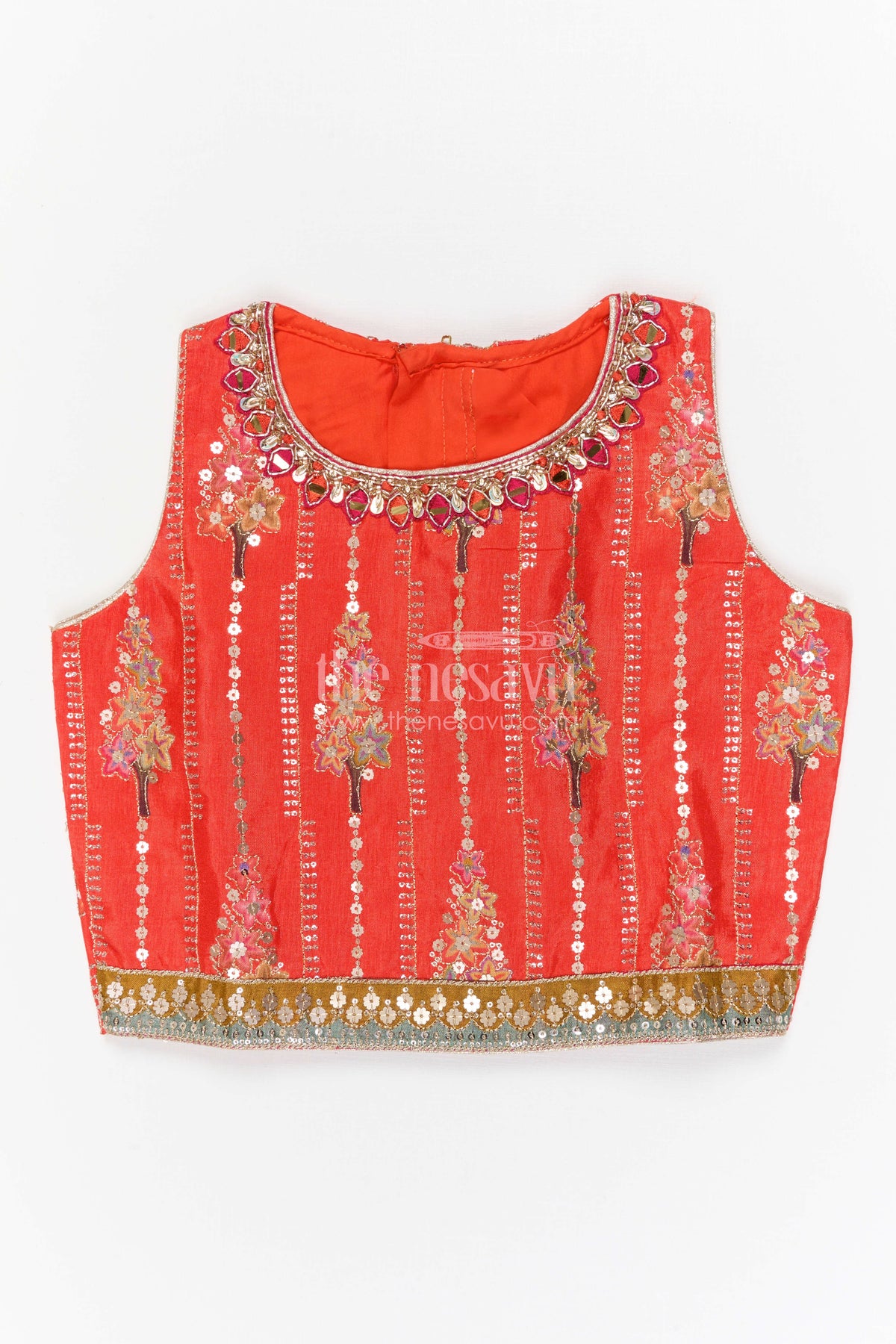 • The blouse features detailed designer sequence embroidery that adds a sparkling festive touch