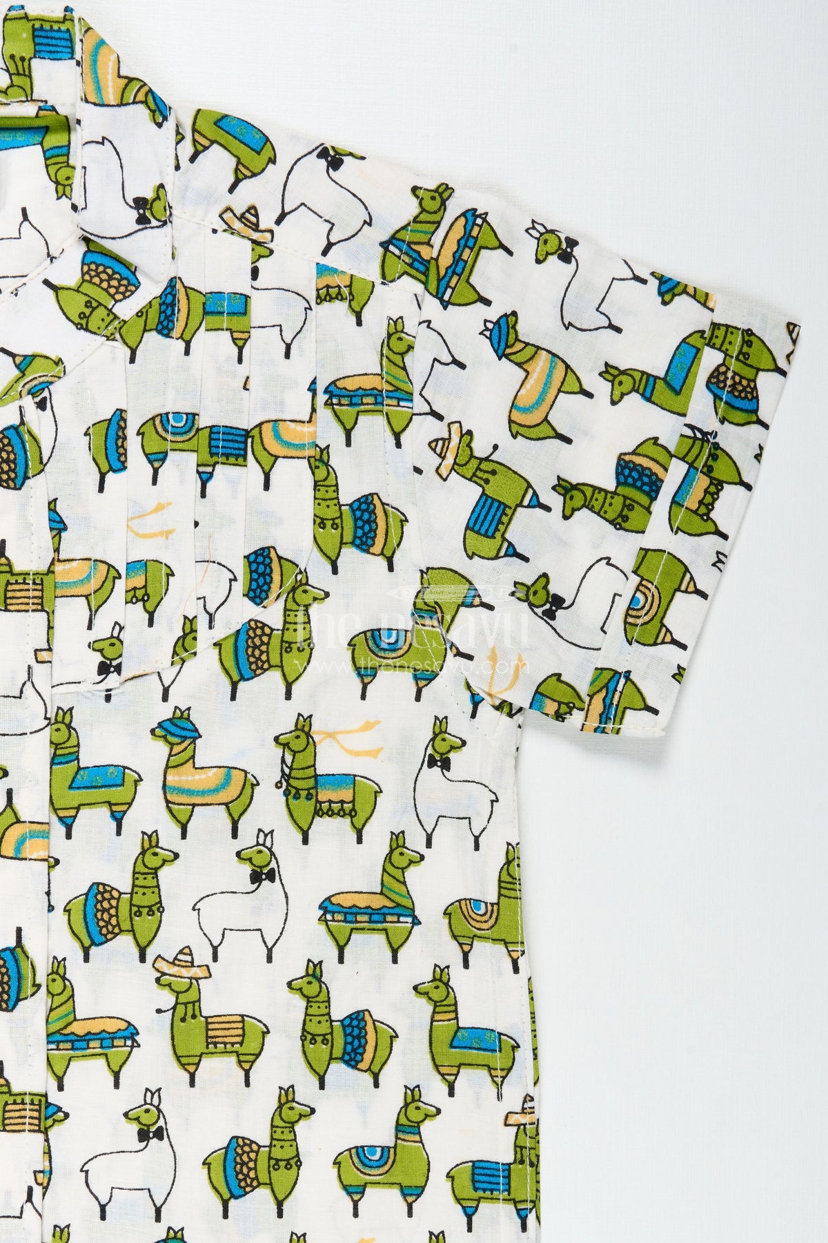 The Nesavu Boys Cotton Shirt Jungle Theme Animal Print Shirt for Boys Lightweight Summer Wear Nesavu 16 (1Y) / White BS280A-16 Nesavu Cotton Summer Shirt Boys Leafy Jungle Theme Playful Green Animal Digital Print
