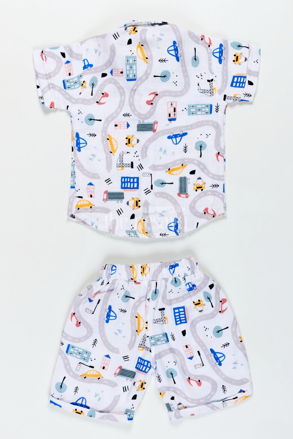 Shorts t shirt set designs don’t get more fun than this boys muslin cotton outfit, created with vibrant digital prints and soft materials for all-day wear. The breathable muslin fabric ensures that your child stays cool and comfortable, even during high-energy play. Featuring a matching t-shirt and shorts with quirky and colorful illustrations, this set is designed to delight young minds. The t-shirt has a relaxed fit with short sleeves, while the shorts include an elastic waist for easy movement. This playful set is perfect for both indoor and outdoor fun, blending visual charm with exceptional wearability. Whether it’s a weekend getaway or daily park visits, this outfit is as practical as it is eye-catching.