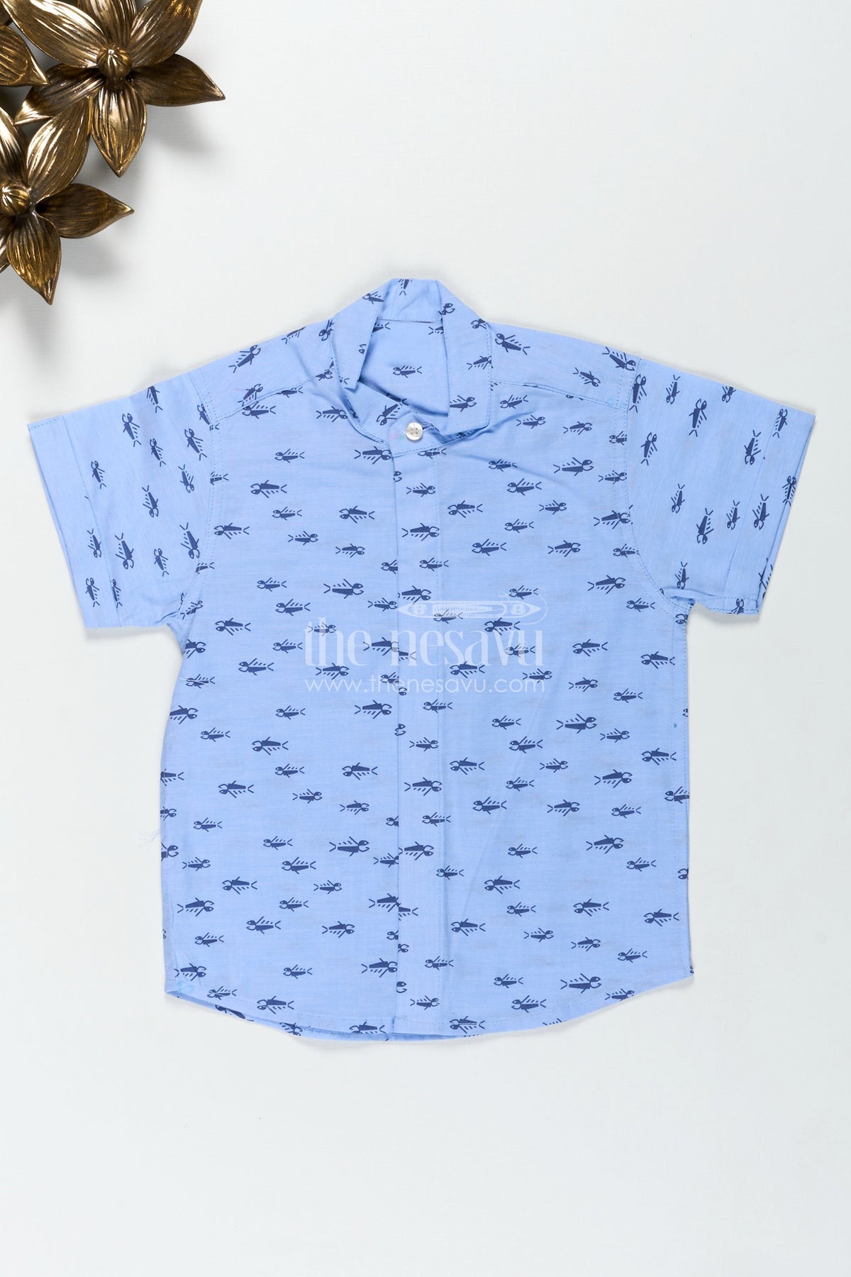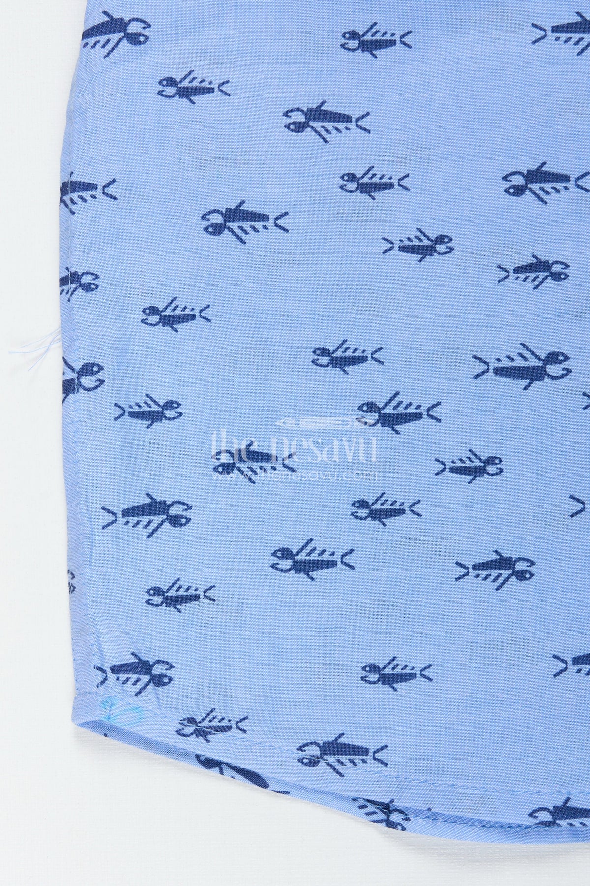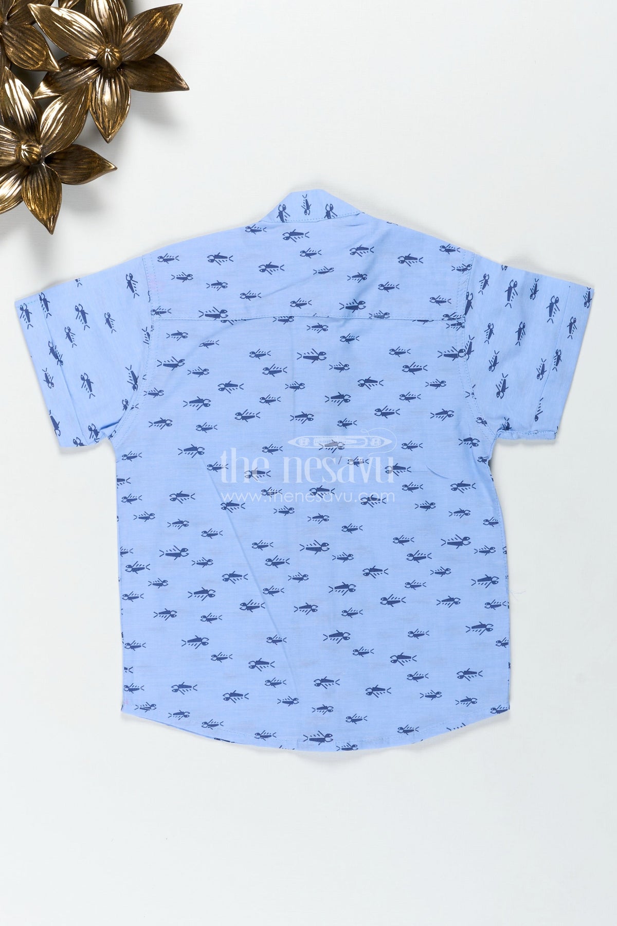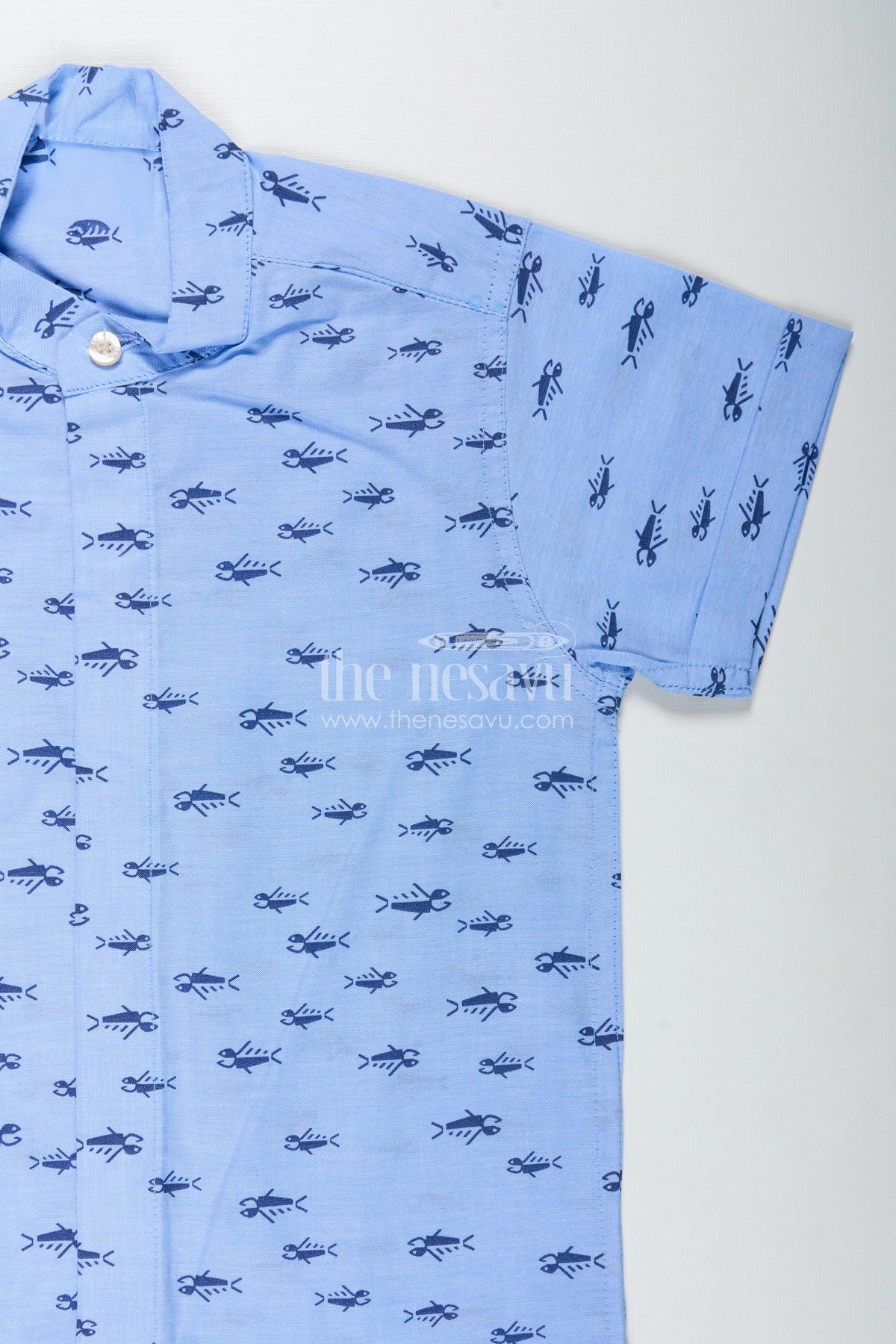 Boys Shirt for Daytime Outings and Functions in Blue Cotton with Navy Tribal Print Accents
