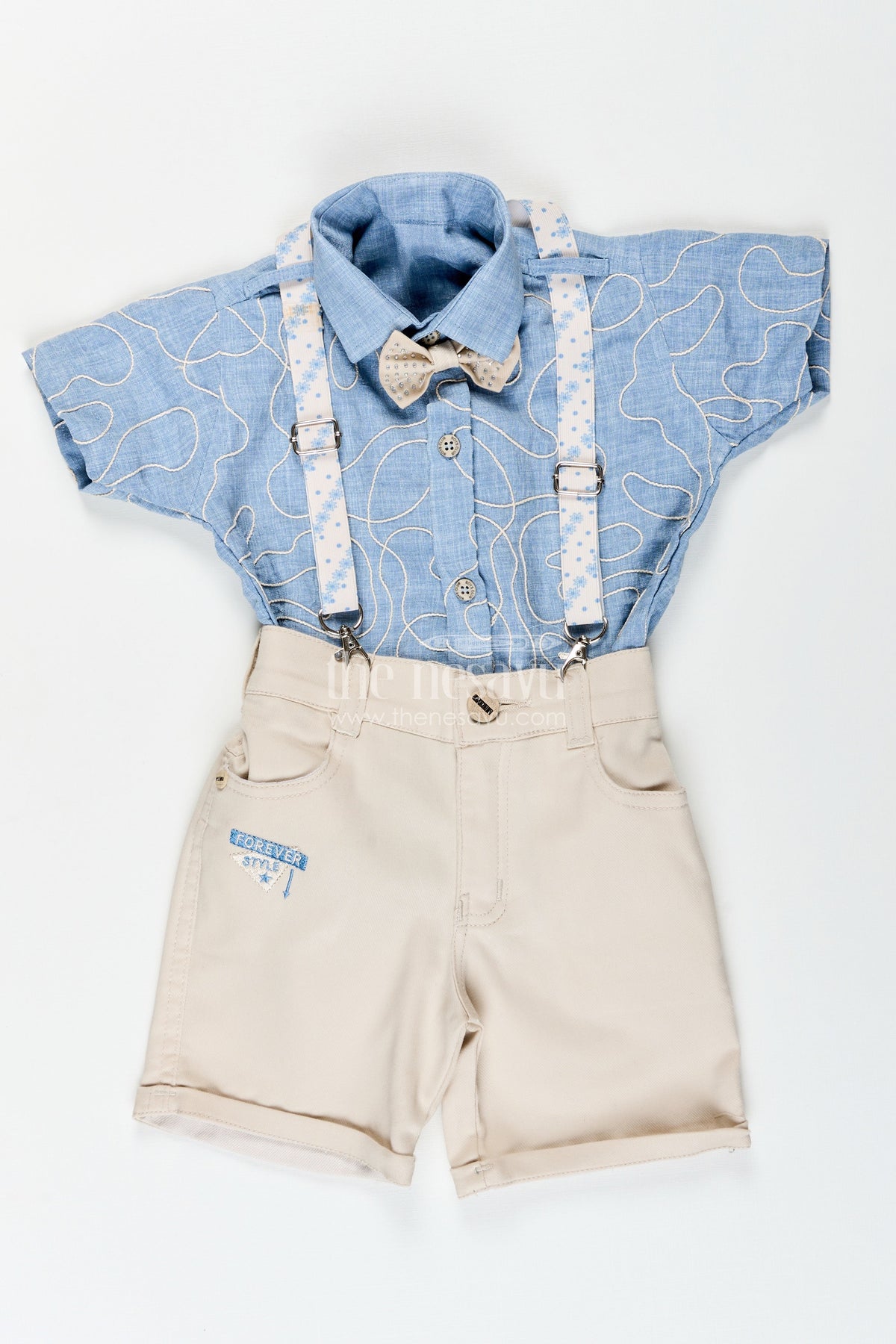 The Nesavu Boys Casual Set Boys Suspender Outfit with Embroidery and Bow Tie for Birthday Parties Nesavu Nesavu boys embroidered suspender set bow tie birthday celebrations photoshoots