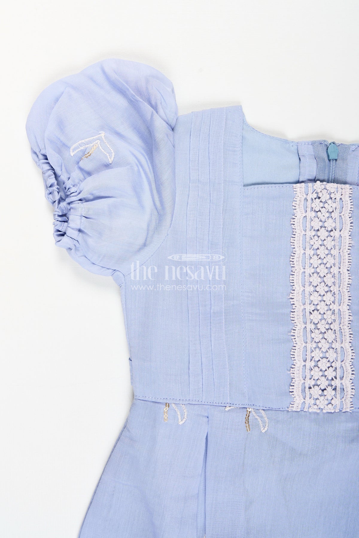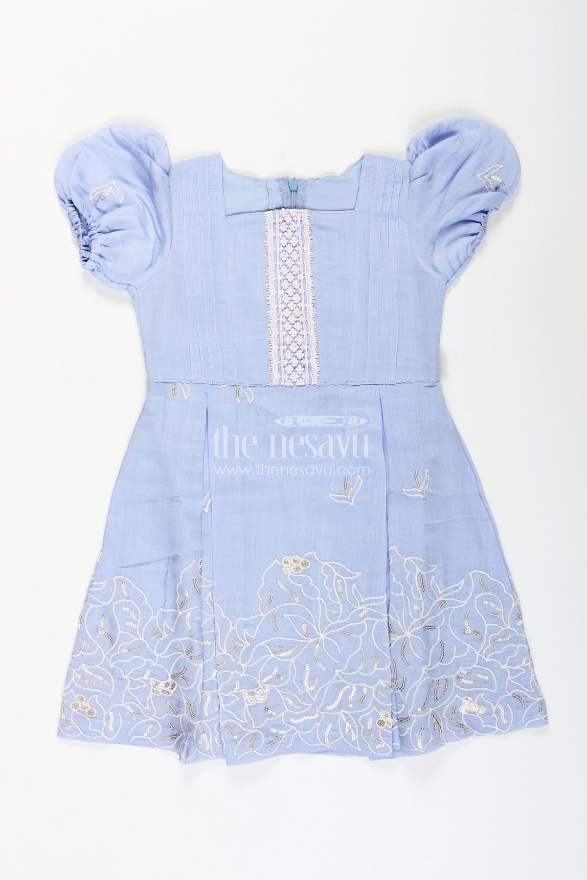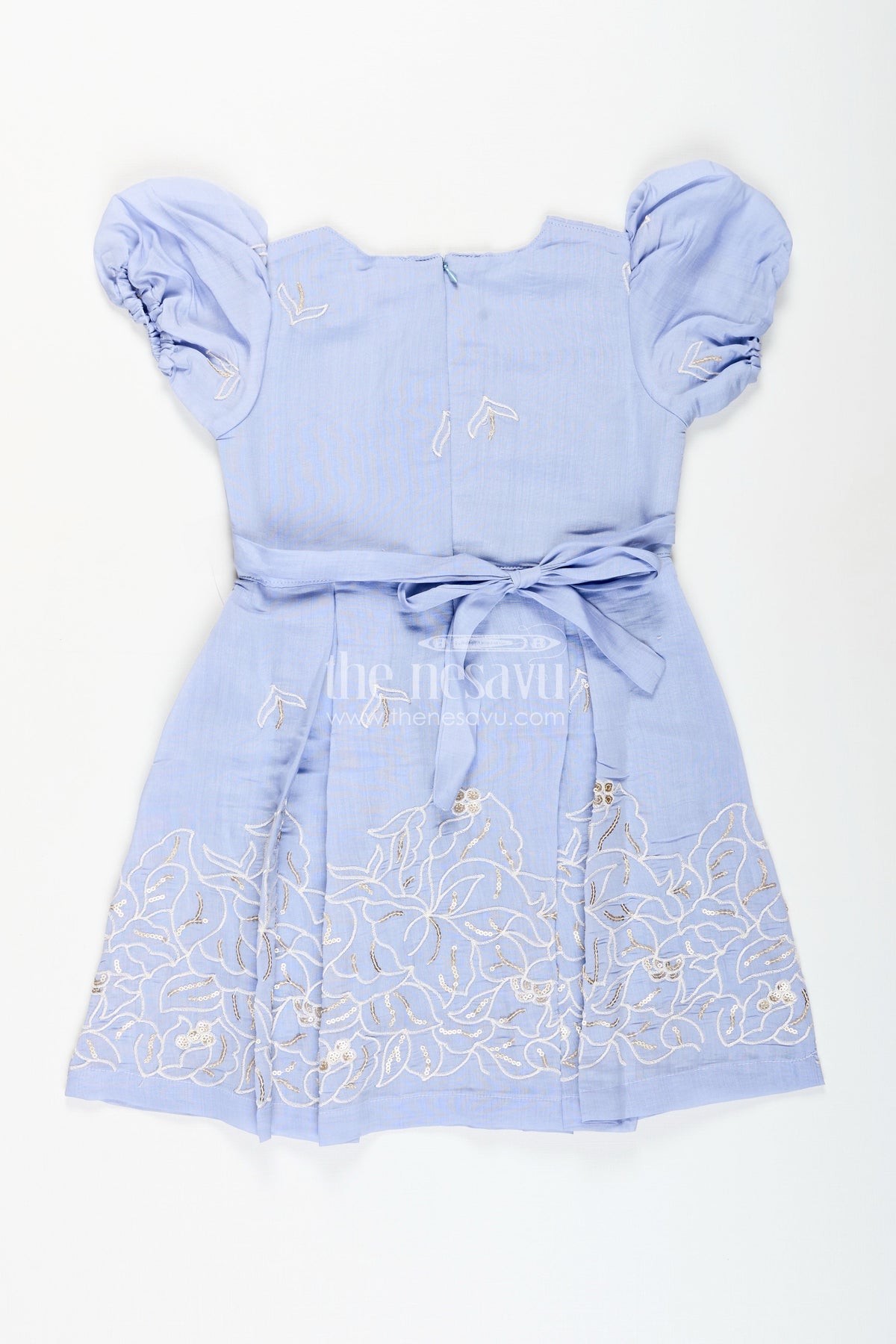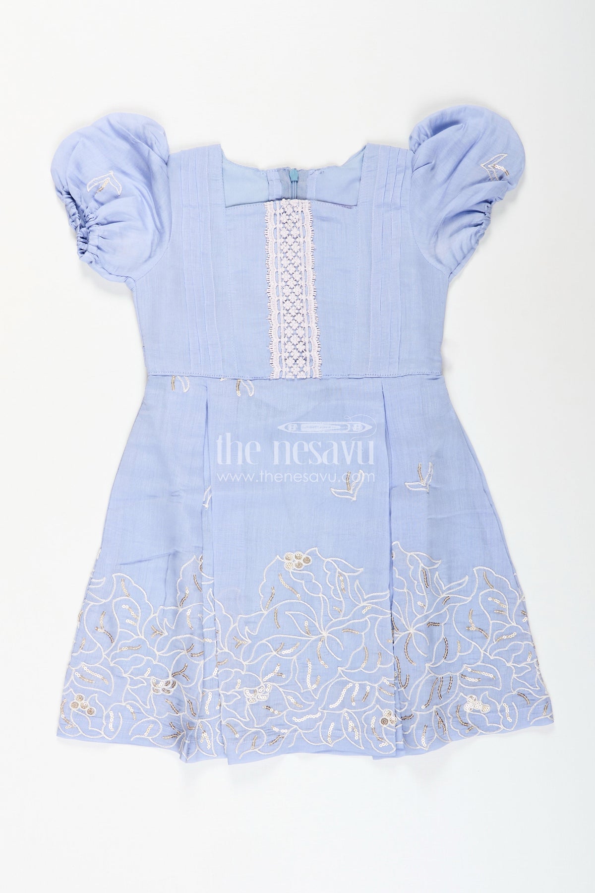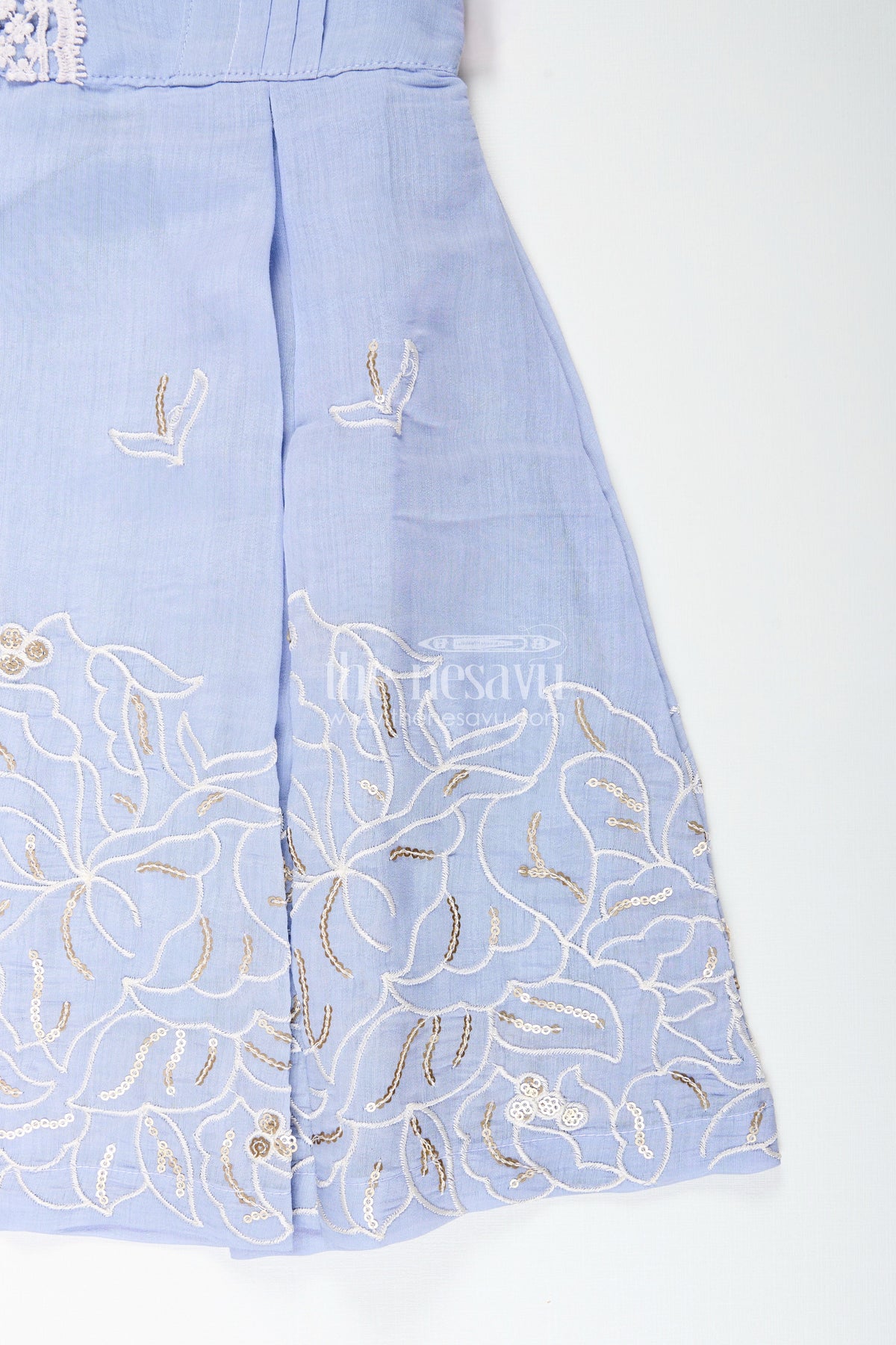 The Nesavu Girls Chanderi Frock Chanderi Frock for Toddler Girls for Weddings and Festive Events Nesavu 20 (3Y) / Blue GFC1827B-20 Nesavu chanderi embroidered frock toddler girls weddings traditional functions