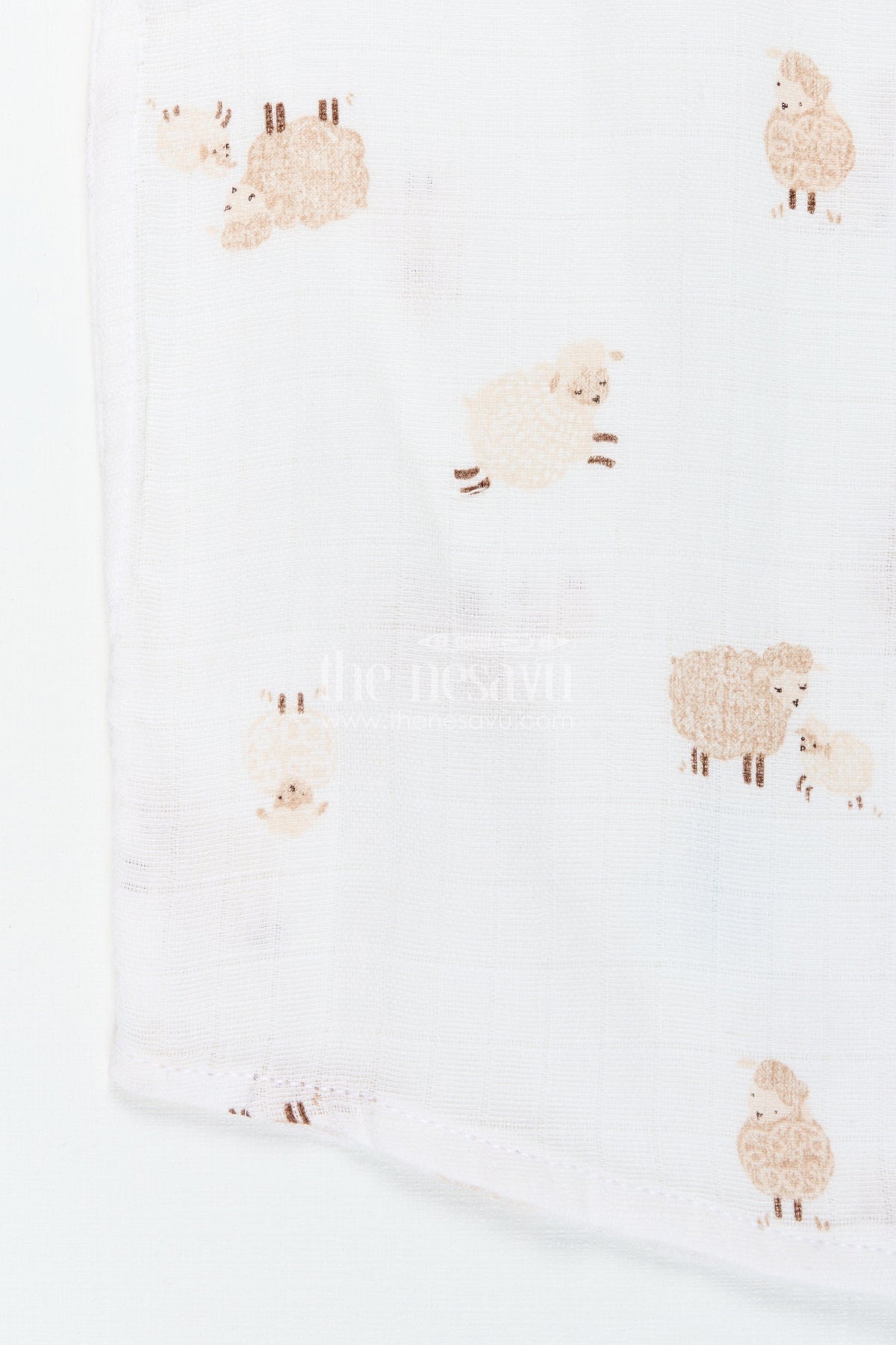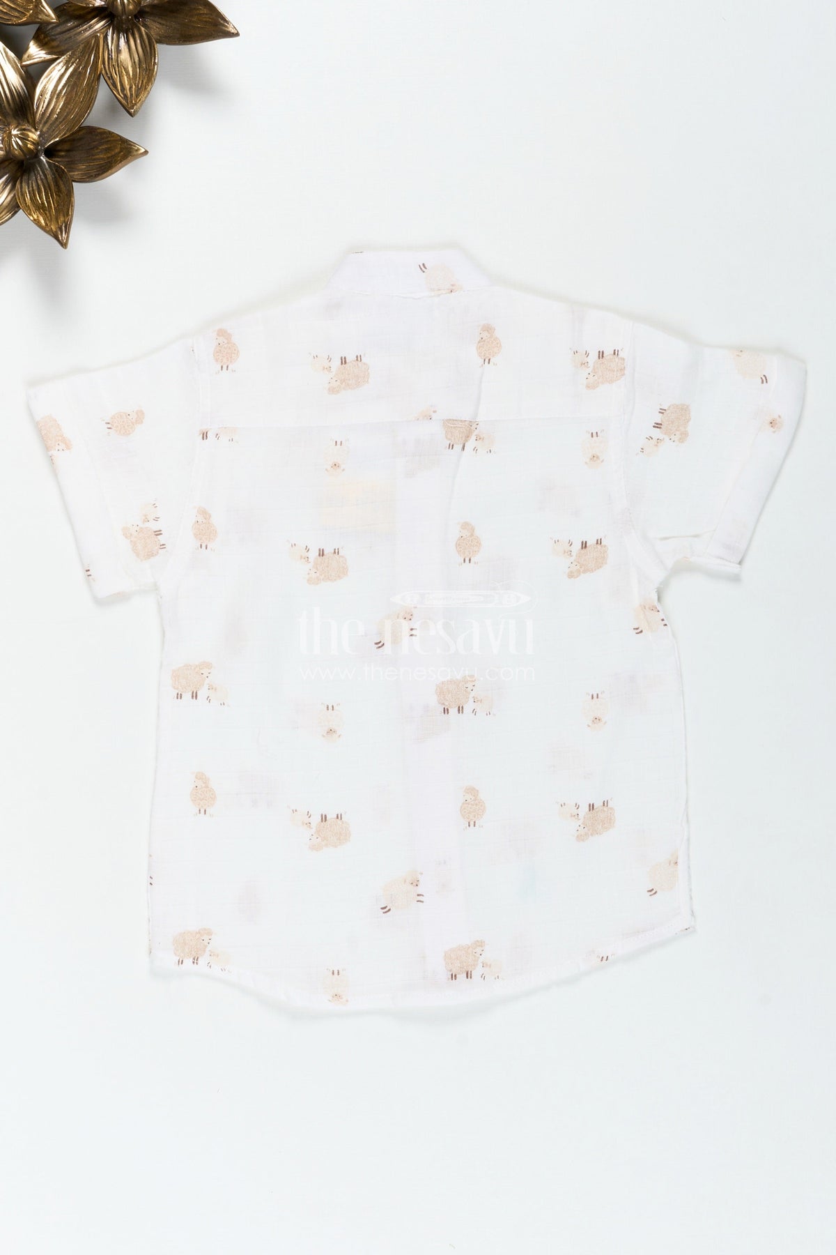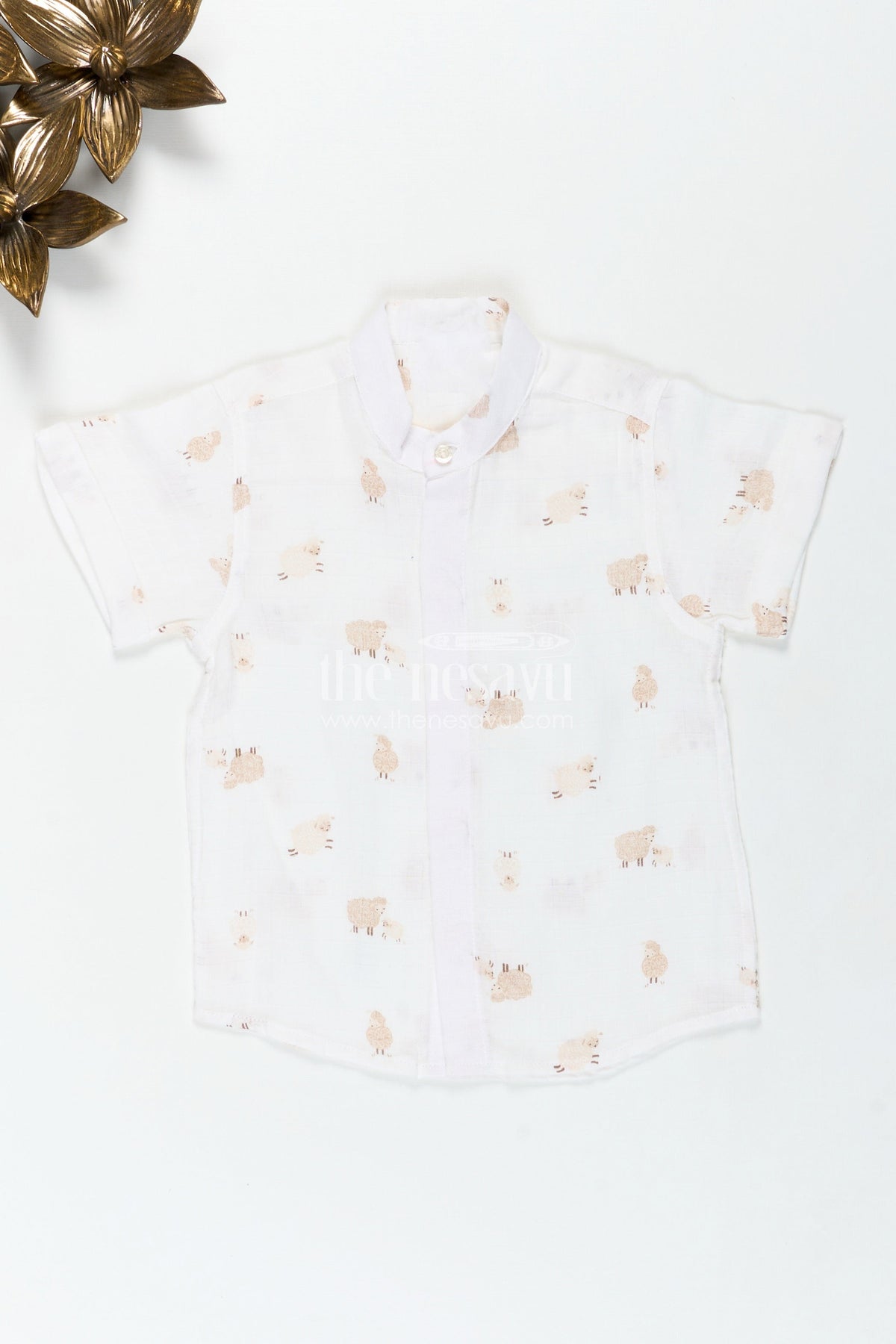 Elephant Print Shirt Boys captures the charm of wildlife in a lightweight and breathable design perfect for curious young minds. Crafted from ultra-soft muslin cotton with digital print, this shirt features playful elephant motifs scattered across a white background. The fabric feels gentle on the skin, making it ideal for daily wear or relaxed outings. The short sleeves and mandarin collar offer a stylish yet comfortable fit, while the neutral color palette keeps it easy to pair with shorts, jeans, or traditional bottoms. Designed for toddlers and young boys, this shirt is both functional and fun—ideal for any casual day with a touch of adventure.