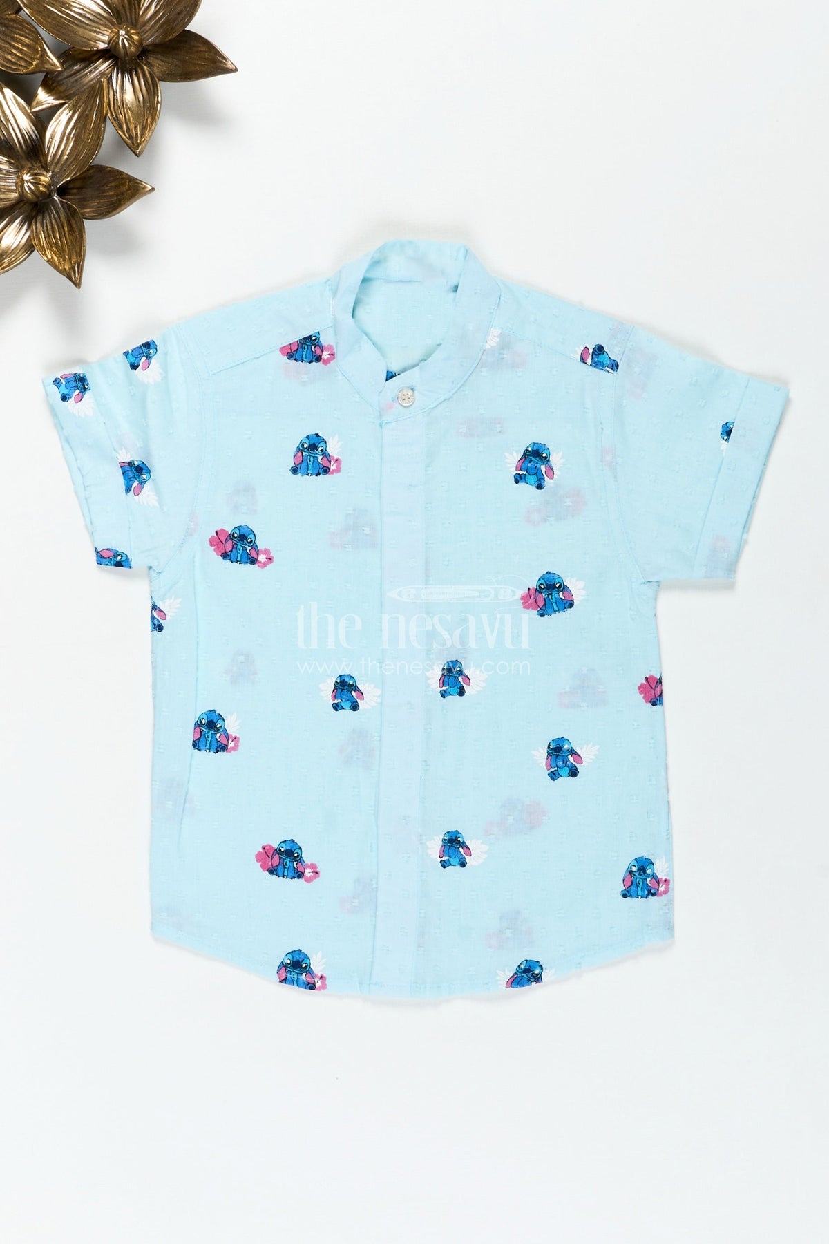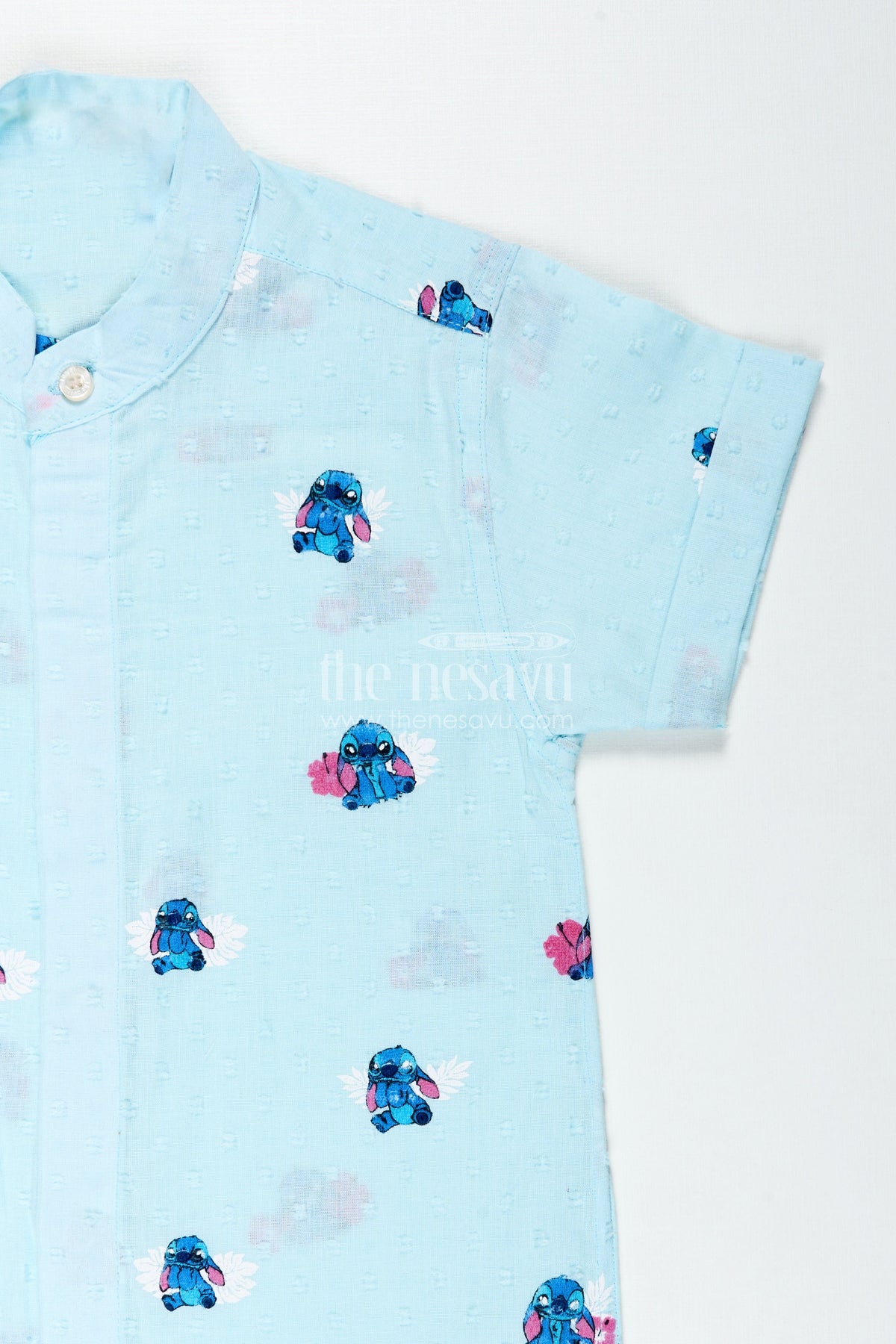 Fun Casual Shirt for Toddlers is the perfect pick for playful days and cartoon-filled adventures. Made from designer georgette with digital print, this soft and airy shirt is tailored for comfort and cuteness. The light aqua backdrop sets the stage for an all-over cartoon-style print featuring a friendly blue creature holding a flower—sure to become a quick favorite. The mandarin collar and short sleeves maintain a clean, structured look while the breathable fabric keeps kids cool all day long. Whether it’s a weekend outing, birthday party, or playdate, this shirt brings joy and comfort to every moment.