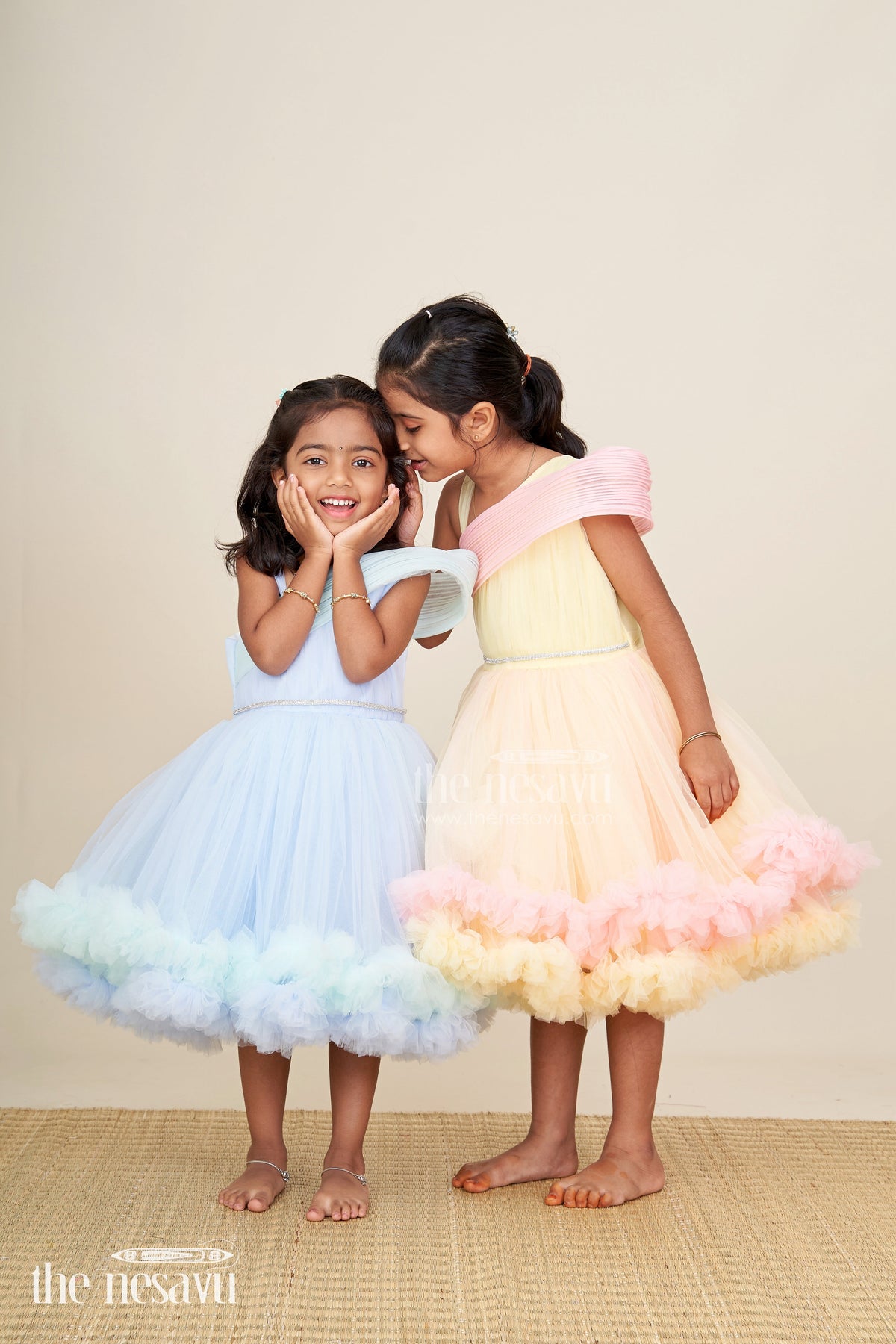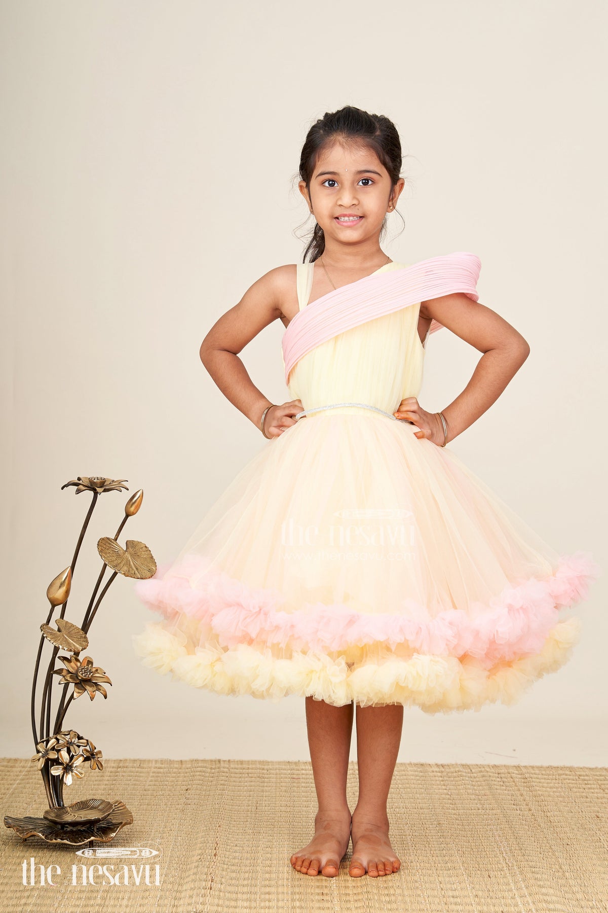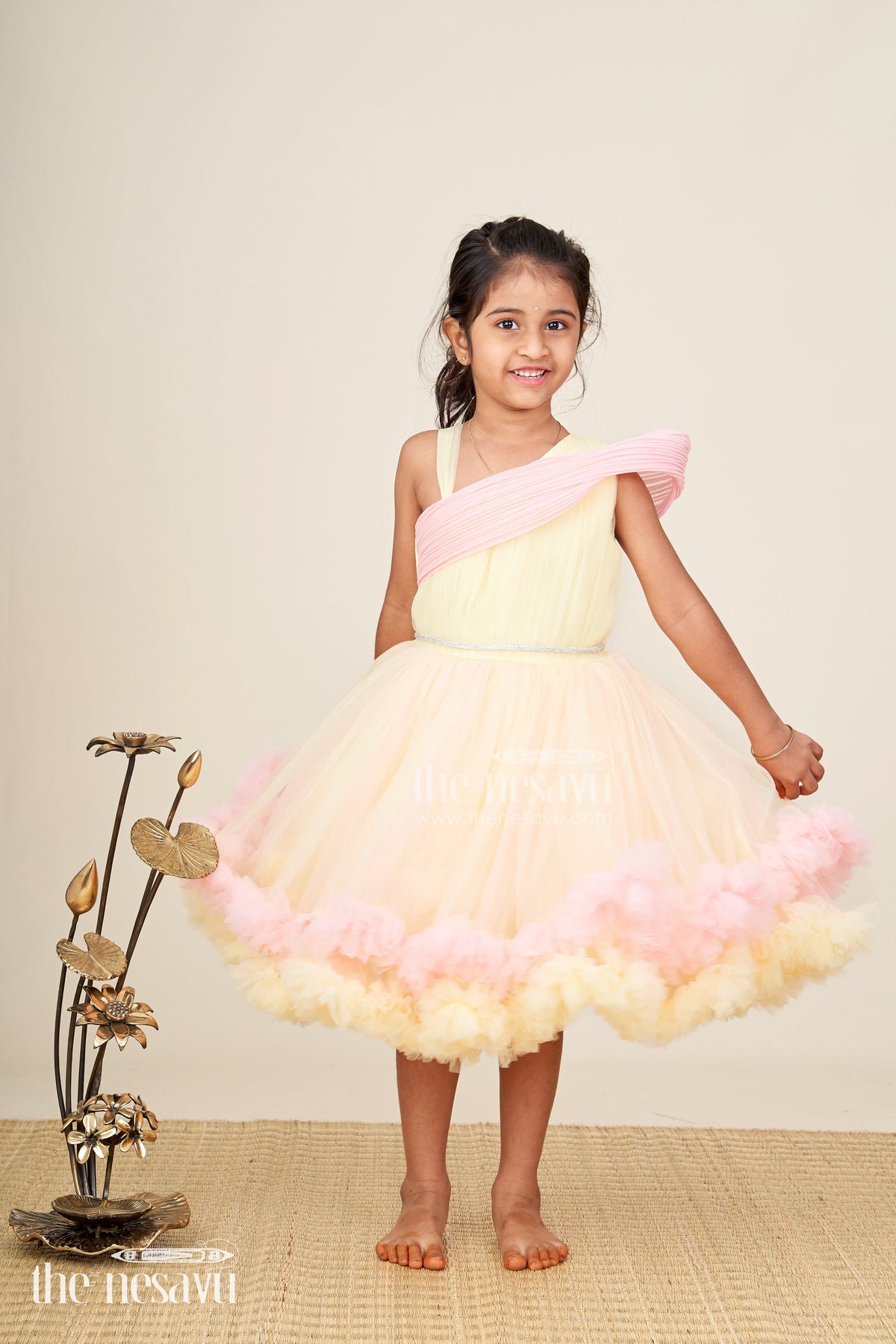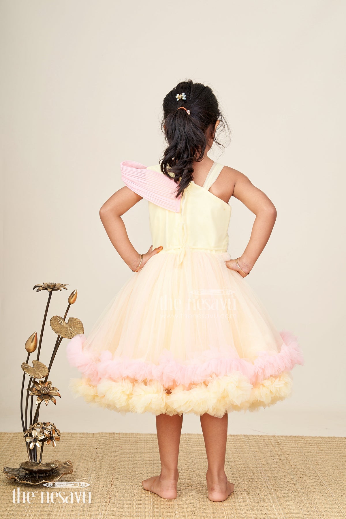 The Nesavu Girls Fancy Party Frock Soft Net Party Frock for Baby Girls Perfect for Birthdays and Family Photos Nesavu 16 (1Y) / Yellow PF253A-16 Nesavu soft net frock baby girls  perfect birthdays photoshoots