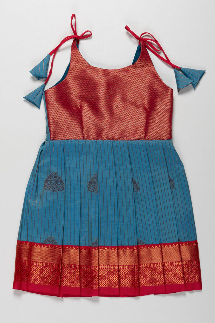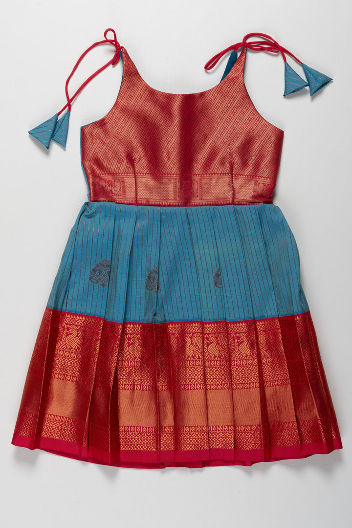 The Nesavu Tie-up Frock Elegant Red and Blue Silk Tie-Up Frock for Annaprasana and Chudakarana Nesavu 14 (6M) / Blue / Style 6 T381F-14 Elegant Red and Blue Silk TieUp Frock for Girls | Festive and Traditional Wear | The Nesavu