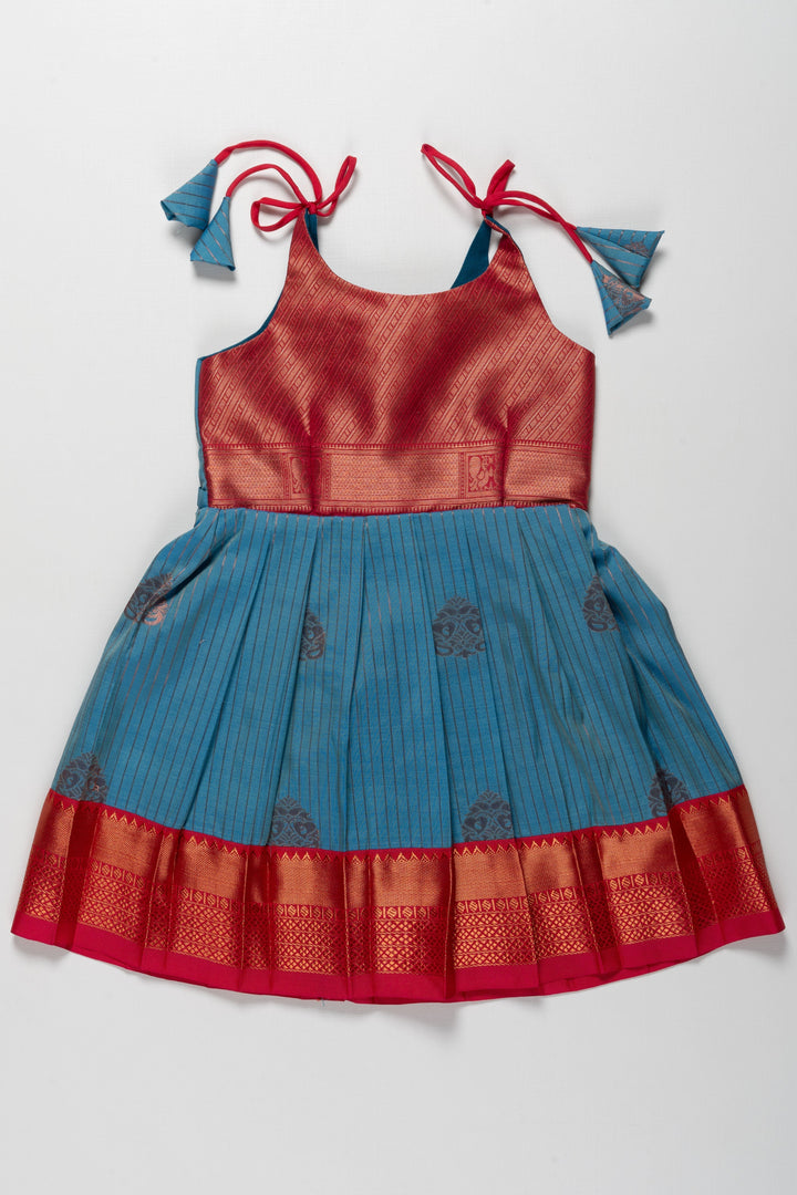 The Nesavu Tie-up Frock Elegant Red and Blue Silk Tie-Up Frock for Annaprasana and Chudakarana Nesavu 14 (6M) / Blue / Style 4 T381D-14 Elegant Red and Blue Silk TieUp Frock for Girls | Festive and Traditional Wear | The Nesavu