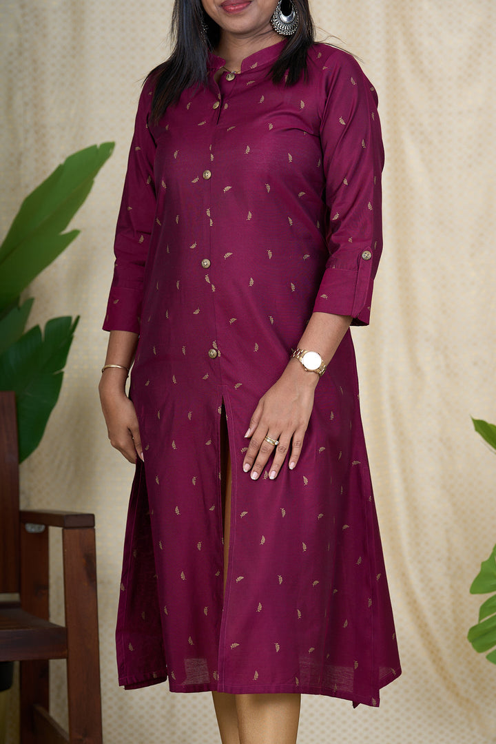 The Nesavu Womens A-Line Kurthas Traditional Kurta for Womenmaroon Viscose Silk Kurta with Chinese Collar Nesavu Traditional Kurta for Women - Maroon Viscose Silk Kurta with Chinese C | The Nesavu