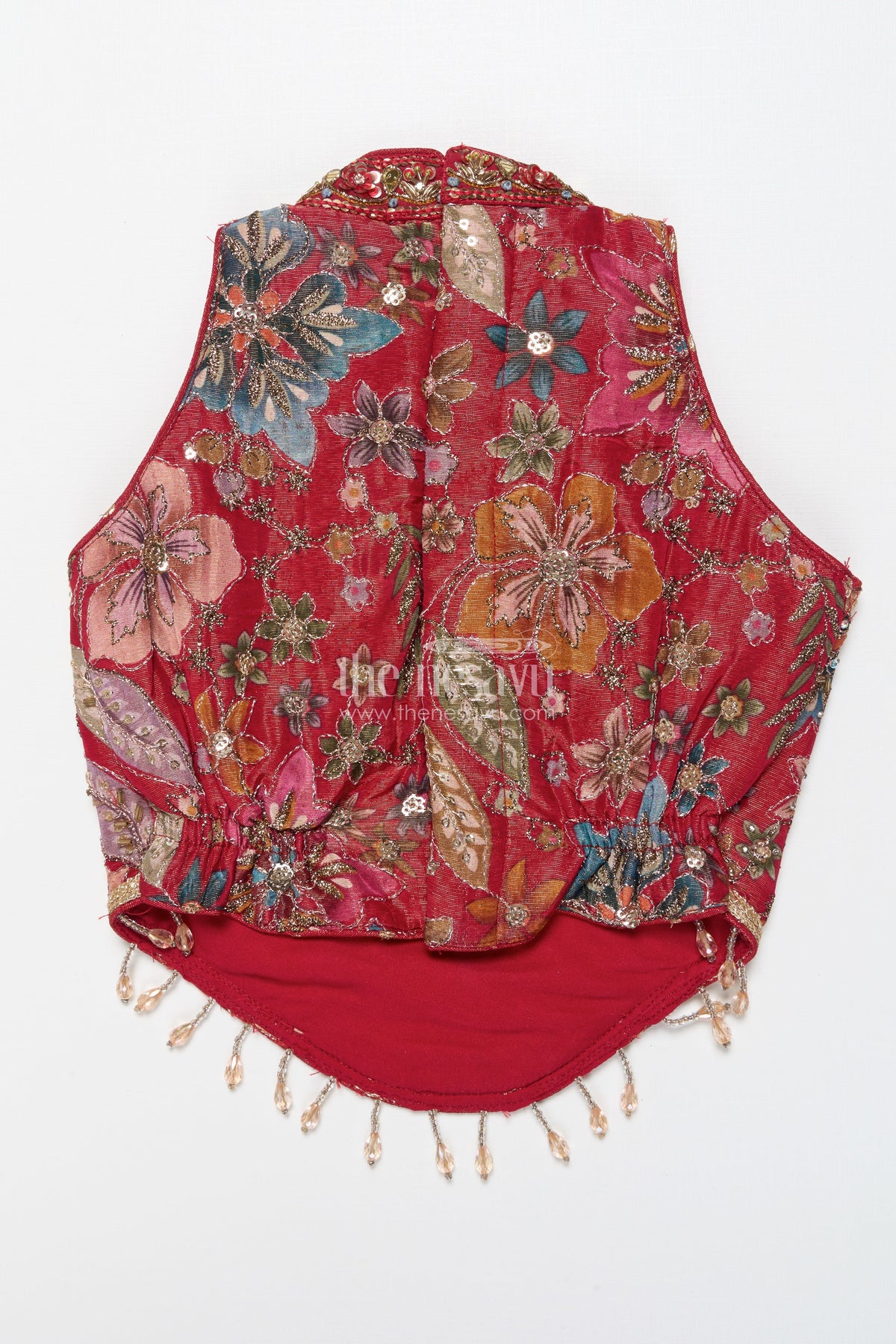• The sleeveless blouse features floral threadwork with pearl bead tassels