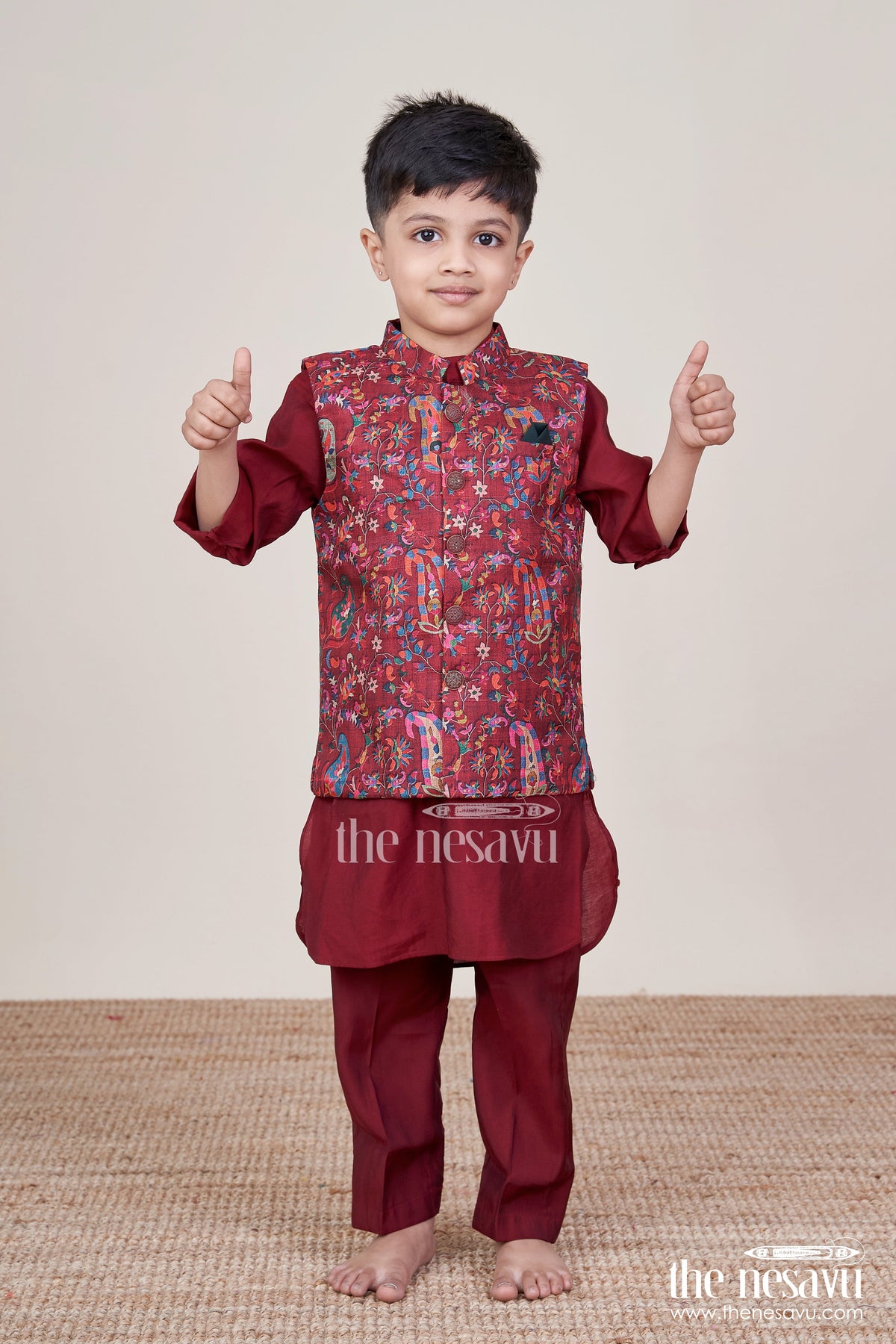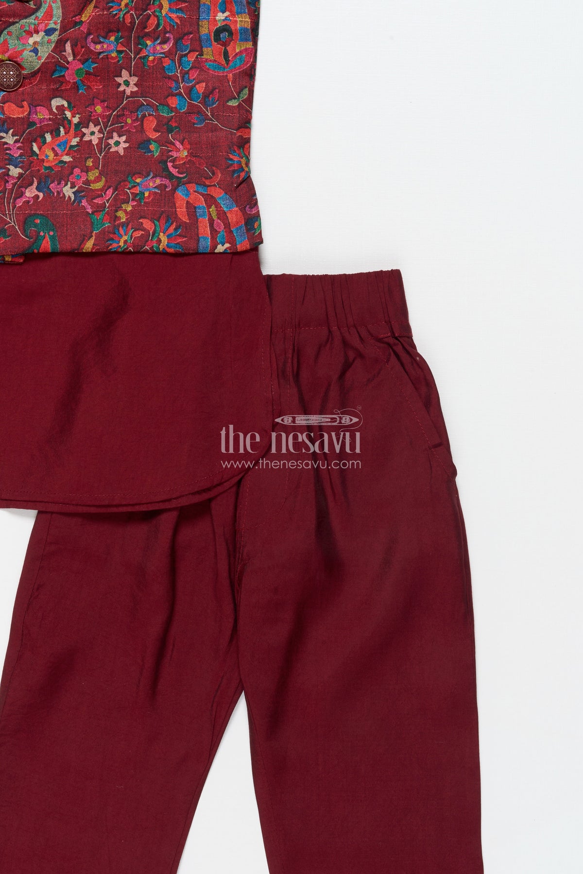 The Nesavu Boys Jacket Sets Boys Festive Jacket Set for Weddings and Special Occasions Nesavu 16 (1Y) / Maroon BES911B-16 Nesavu boys ethnic jacket set digital print weddings festive family occasions