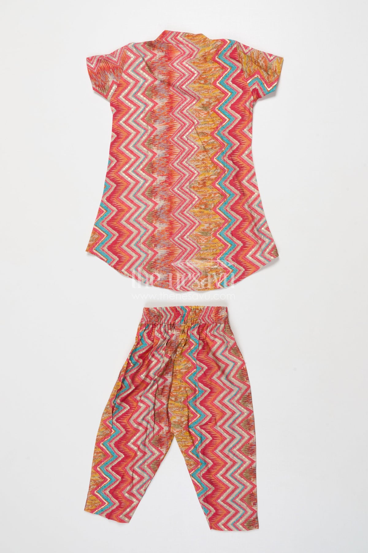 • This baby girl co-ord set features a peplum-style top with rich ethnic digital prints