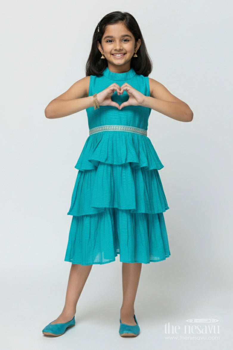 The Nesavu Girls Chanderi Frock Girls Chanderi Cotton Frock for Festivals and School Ethnic Day Nesavu Nesavu girls traditional chanderi frock blue ethnic school functions family events