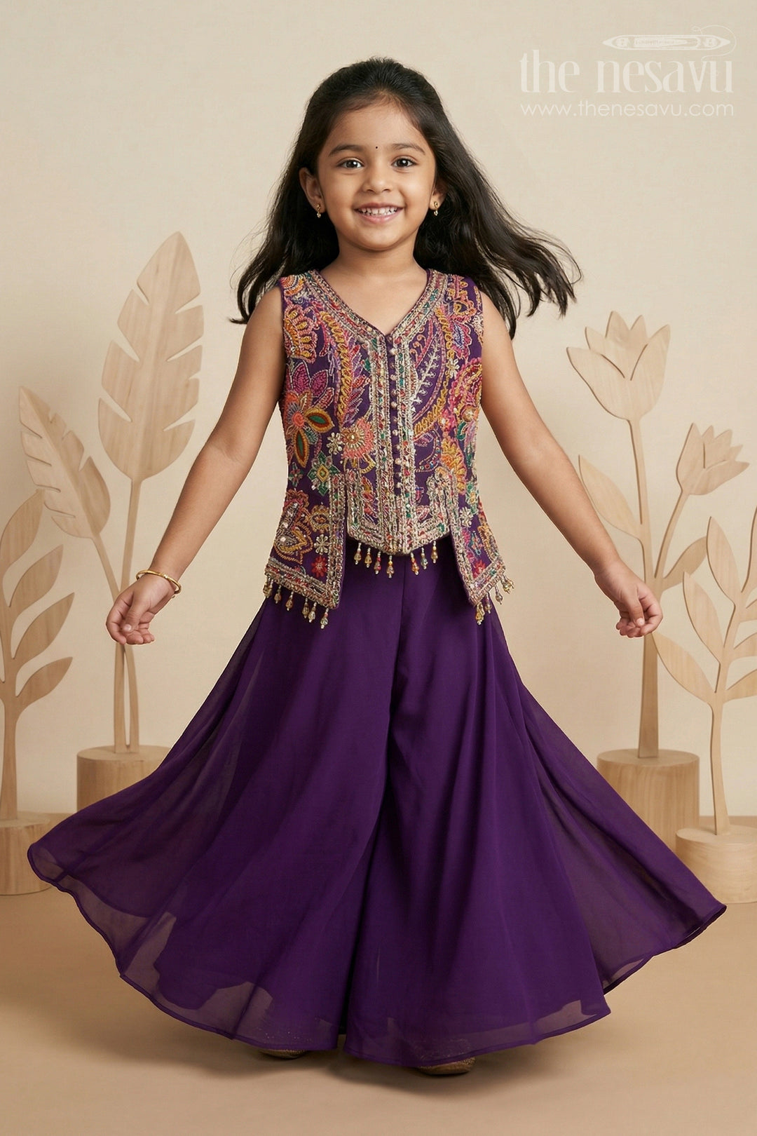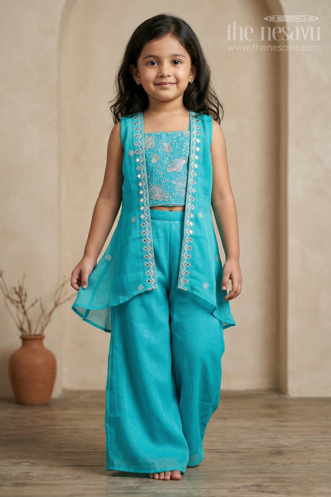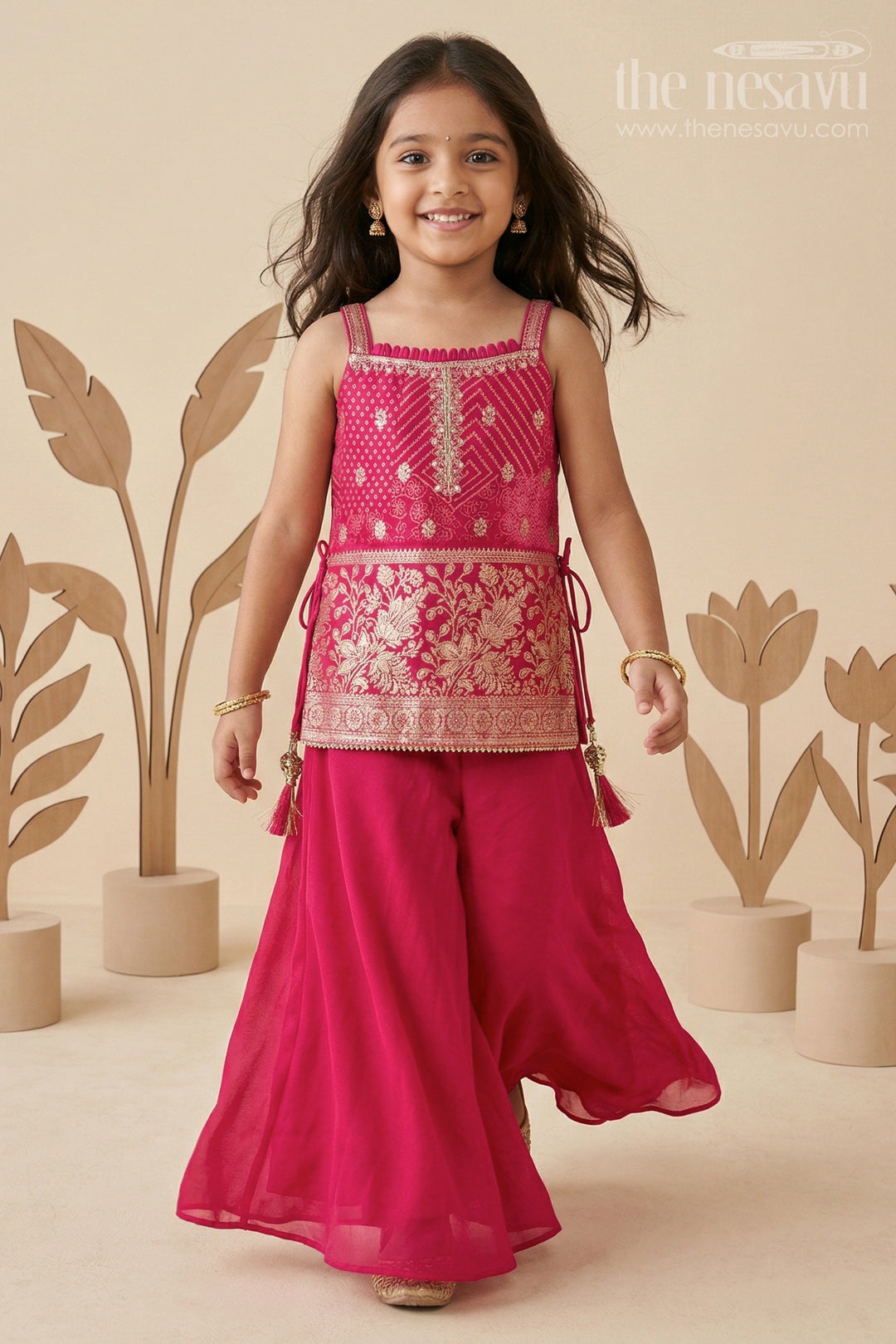 Want an outfit that’s festive, fun, and full of flair? The Nesavu’s girls’ sharara and palazzo sets are made for twirls, celebrations, and all those picture-perfect moments. With flowing style and beautifully coordinated tops and bottoms, these sets are a favorite for weddings, family events, and joyful gatherings. Designed to stand out, they let her move freely while looking effortlessly elegant. Explore now and find a look she’ll love vibrant, stylish, and ready for the spotlight