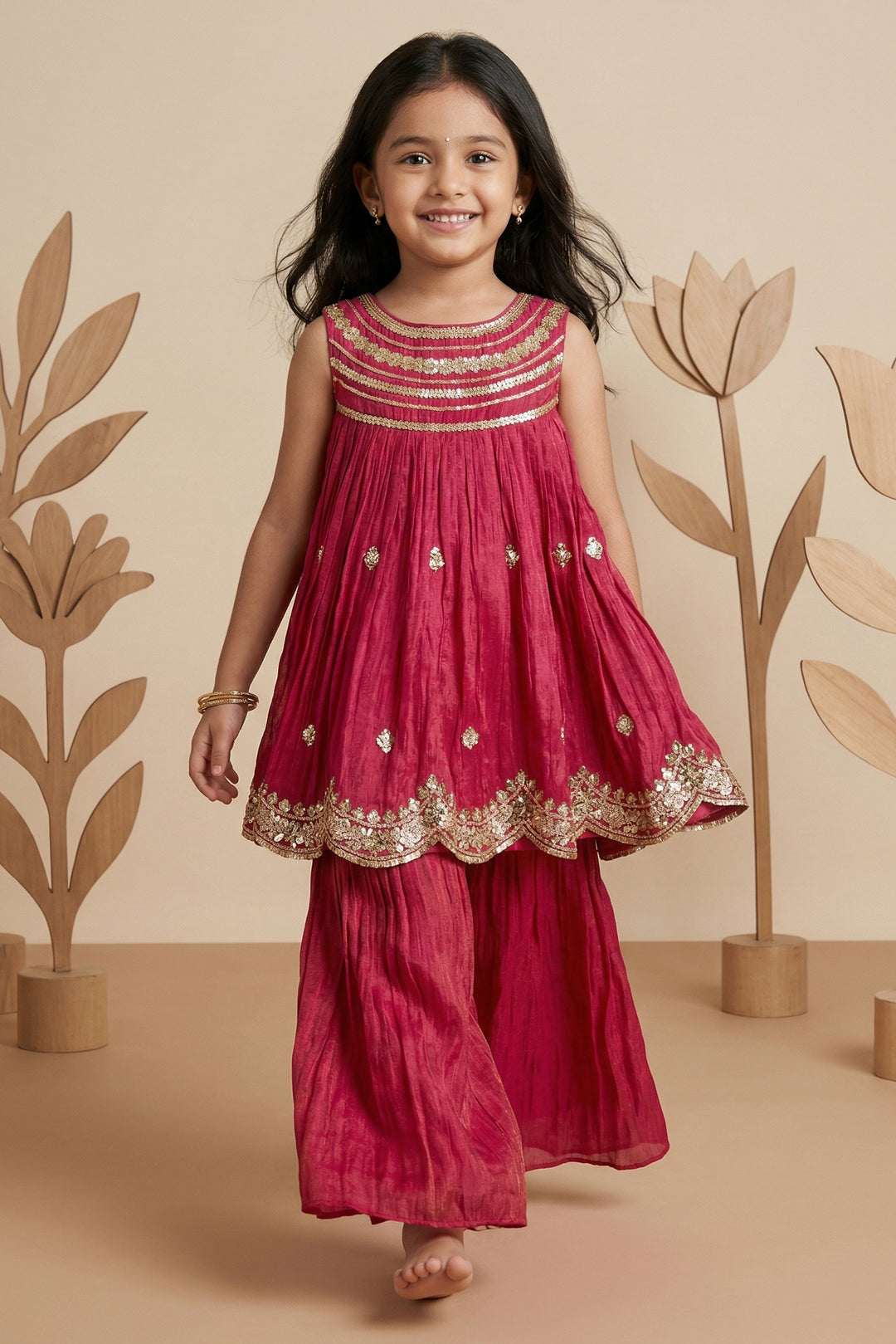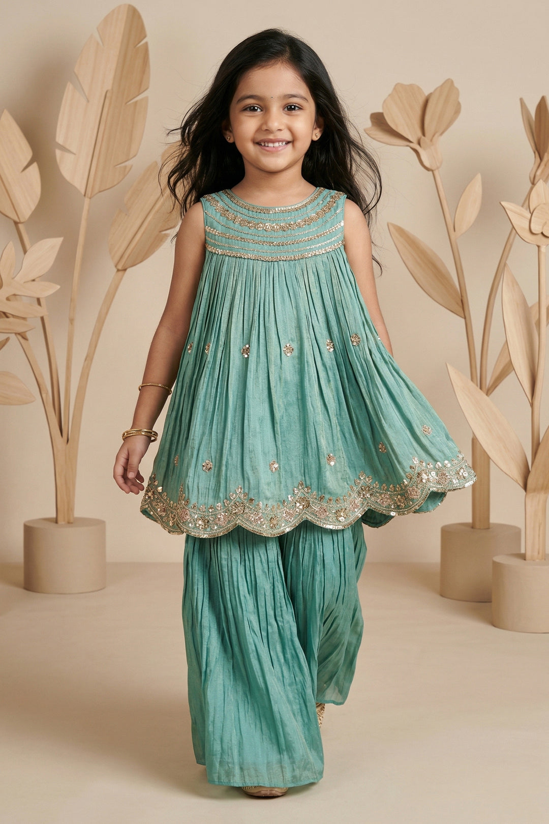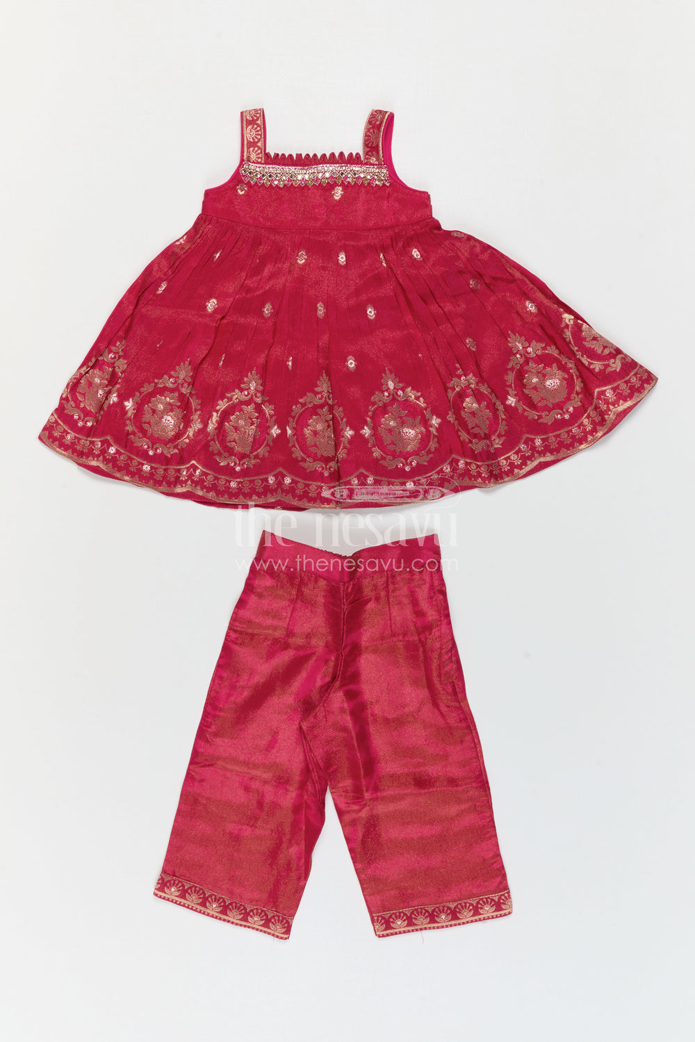 Want an outfit that’s festive, fun, and full of flair? The Nesavu’s girls’ sharara and palazzo sets are made for twirls, celebrations, and all those picture-perfect moments. With flowing style and beautifully coordinated tops and bottoms, these sets are a favorite for weddings, family events, and joyful gatherings. Designed to stand out, they let her move freely while looking effortlessly elegant. Explore now and find a look she’ll love vibrant, stylish, and ready for the spotlight