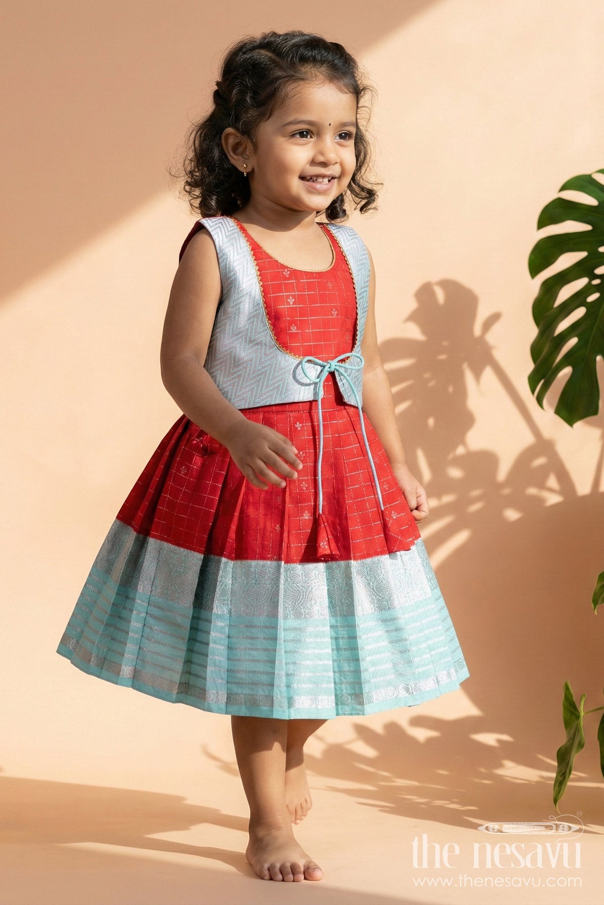 Designer Silk Frock for Toddler Girls Inspired by Kanchivaram Saree Patterns